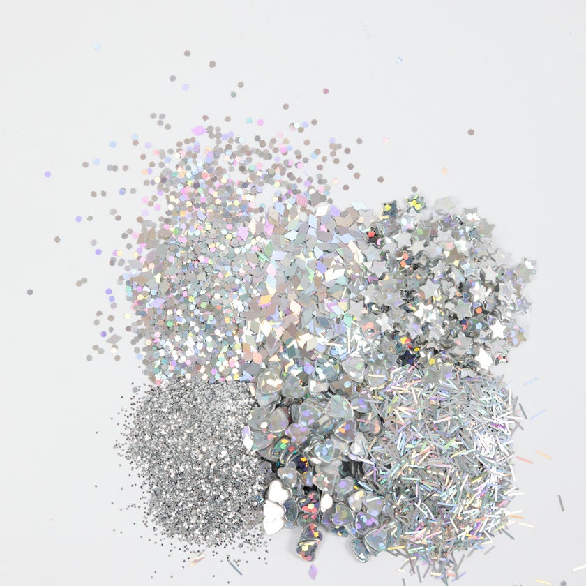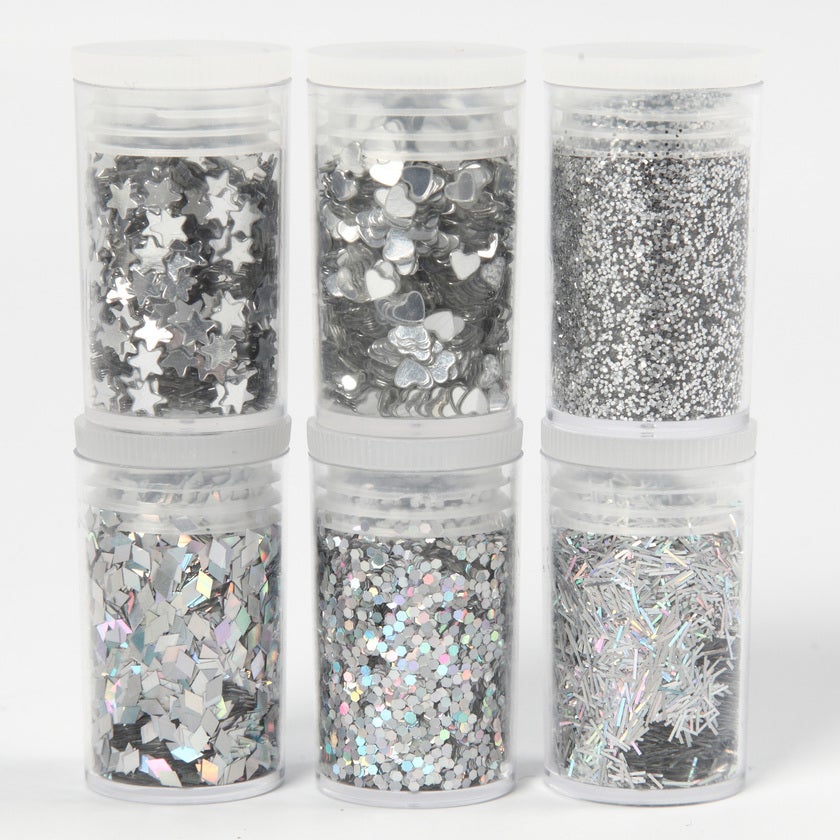 | Namn | Glittermix biologiskt nedbrytbart silver 6x5g |