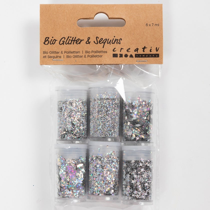 Ge dina kreativa projekt lite glitter och glans med biologiskt nedbrytbart glimmer och minipaljetter. Enkla att blanda och helt komposterbara. Perfekt för dekorationsföremål av trä, kartong och papper.
