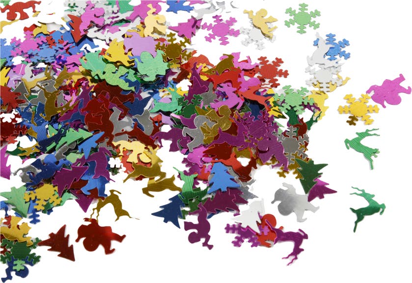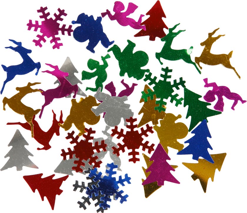 Julmix - Julpaljetter i metallicfärger för att dekorera olika pyssel med jultema. Sortiment av paljetter i olika former och färger med julmotiv. Skapa personliga julklappar och julkort med att dekorera paketen och julhälsningen med paljetterna. Julpyssla och skapa andra dekorativa juldekorationer.