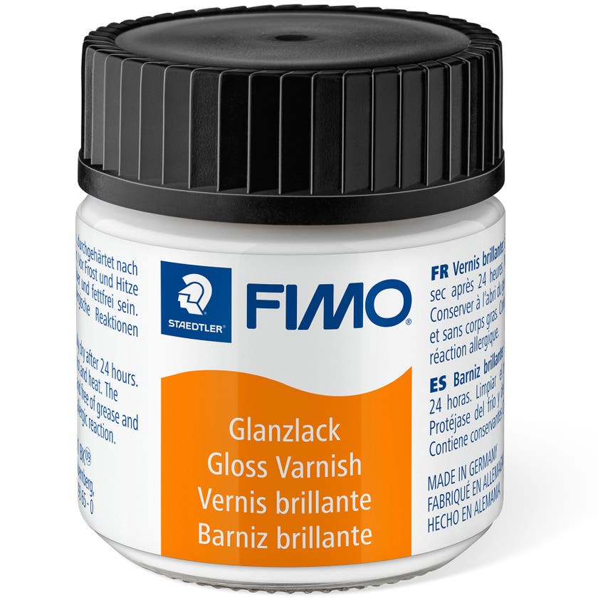 FIMO® 8704 glosslack, vattenbaserat lack som torkar genomskinligt med en glossig yta. Ett lack för att ge en skyddande yta till kreationer av FIMO® lera. Ge alla kreationer som skapats i FIMO® lera en skyddande och glossig yta med detta vattenbaserat glosslack. Lacket är enkelt att lägga på med en pensel och syns tydligt när de är blött då de torkar transparent med en glossig yta. Appliceras på härdad och kall lera.