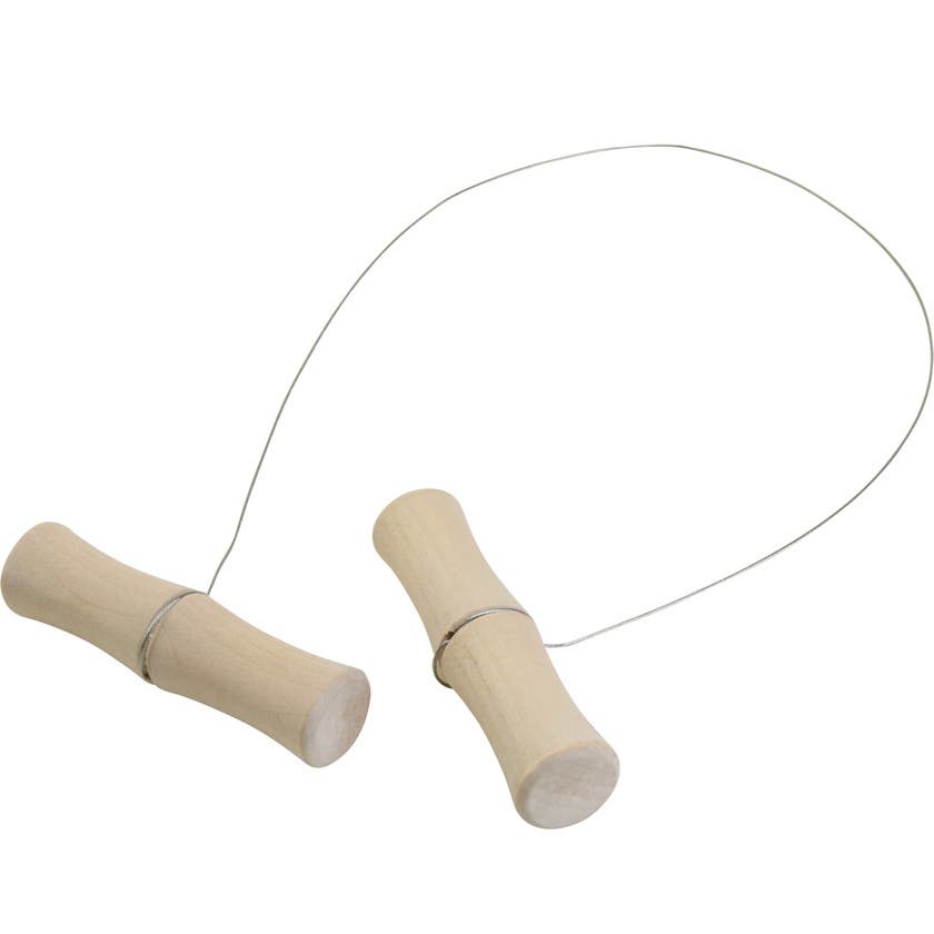 Skärtråd av metall med handtag i trä. Gör det enkelt att skära upp större bitar lera.