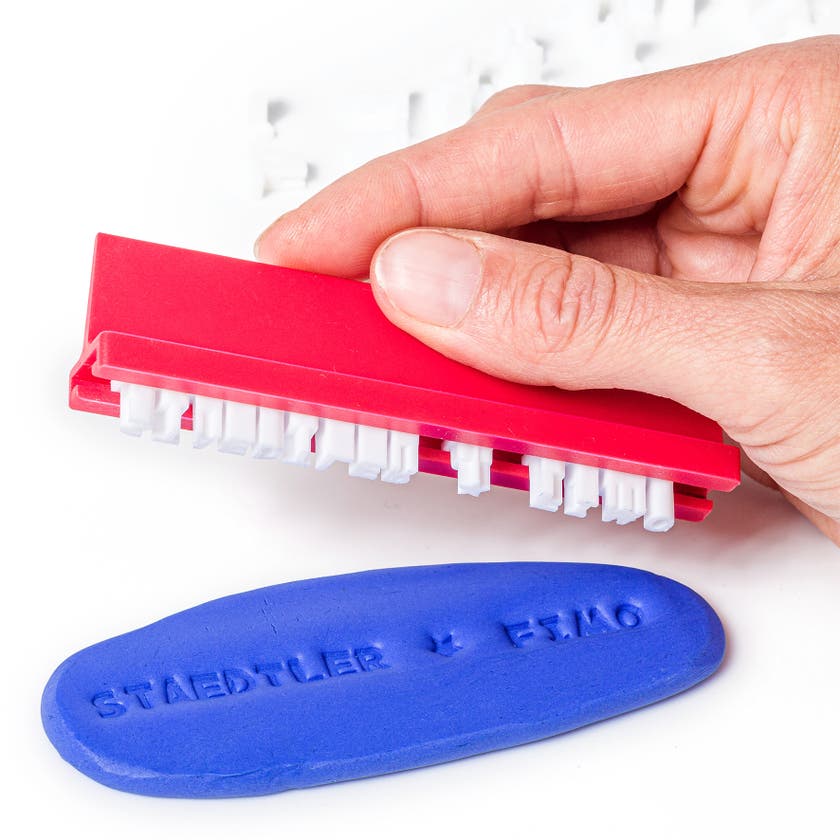 Skapa personliga meddelande och designs i lera med detta stämpelkit från FIMO®. De individuella stansarna kan kombineras i på olika vis för att skapa ett meddelande, namn eller nummer och stämplas enkelt i leran med den praktiska hållaren. Kittet kommer med 49 bokstäver från A till Z samt 19 siffror från 0 till 9 samt 20 specialtecken.