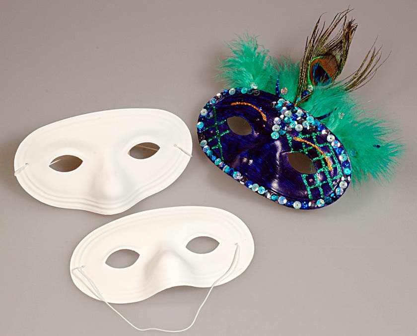 Halv ansiktsmask av papp som passar både till barn och vuxna. Färdig att måla och dekorera. Formpressad mask av vitt papperspulp med elastiskt snöre.