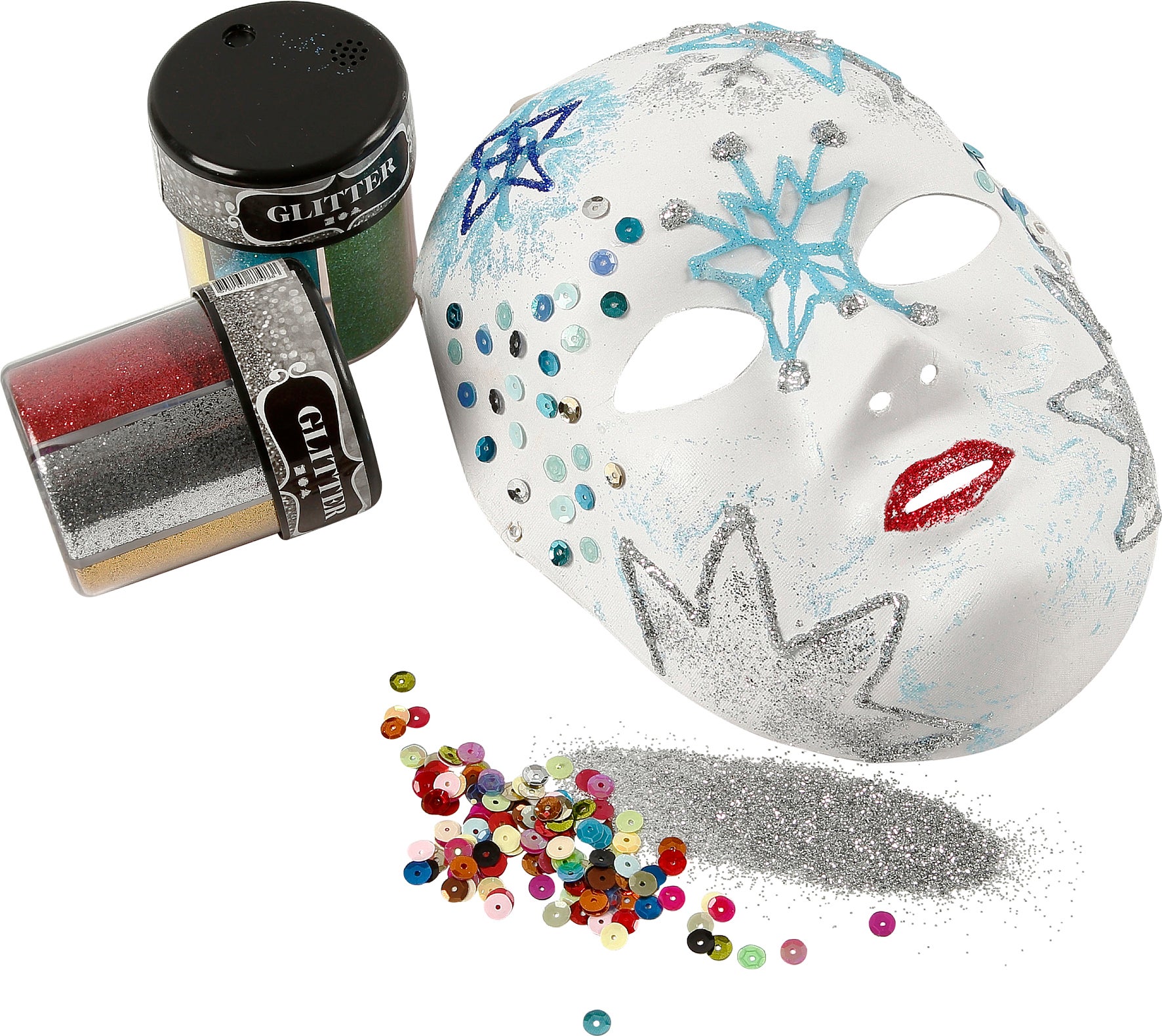 Här finns inga begränsningar med vilka motiv du ska välja - låt fantasin flöda med penseln, pennan, kritan och använd sax och lim för att klippa ur bilder och mönster från tidningar, bilder, tyger mm. Skapa det du behöver för olika teman på maskeraden, kalaset och vardagsleken. Nu kan du bli vem som helst, prinsessan eller prinsen, spöket på Halloween, rovdjuret, kändisen mm.