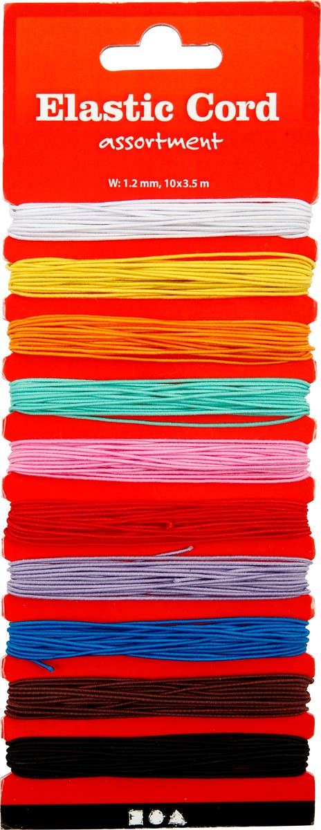 Elastiskt snöre i flera fina färger. Lämpliga för att dekorera ditt pyssel och skapa effekter i ditt dekorativa arbete.