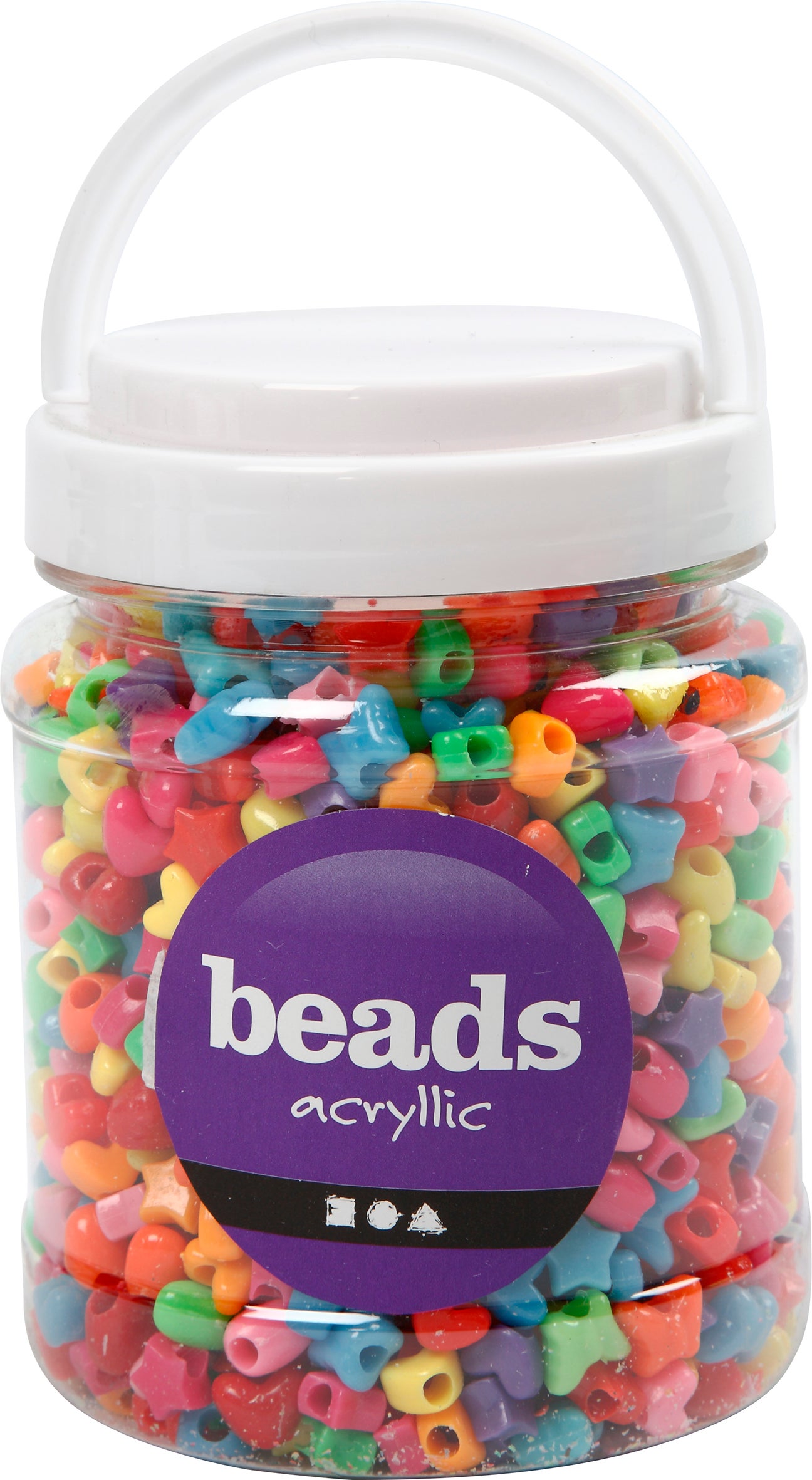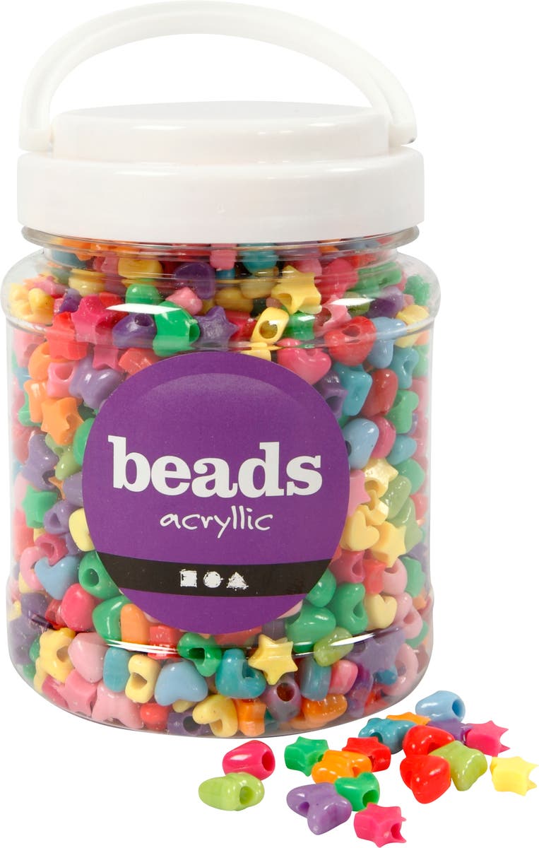 Roliga pärlor att dekorera med. Blandade grovlekar. Mixade plastpärlor i många färger och former. Stort och fint sortiment med plastpärlor i riktigt många färger och former. Storlek 6–20 mm, hålstl. 1,5–6 mm. CE-märkta.