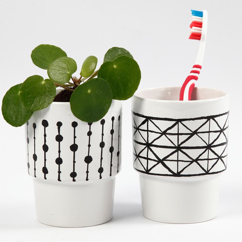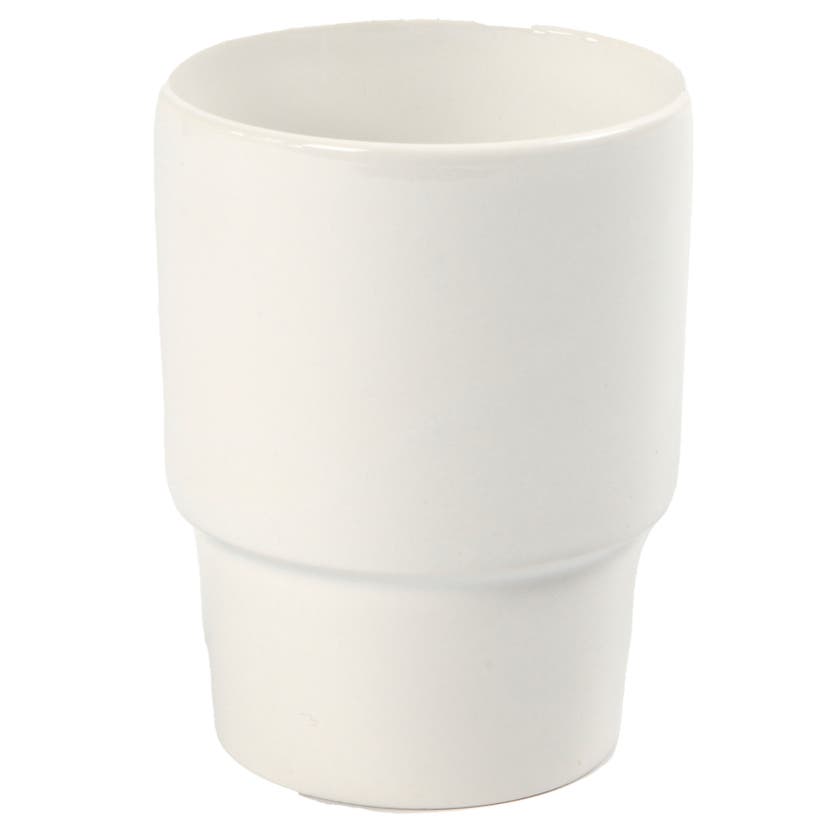 Glaserad porslinsmugg utan handtag. Dekorera muggen och skapa en alldeles egen, personlig design! Användbar som både vas, pennburk eller till andra lösa prylar.