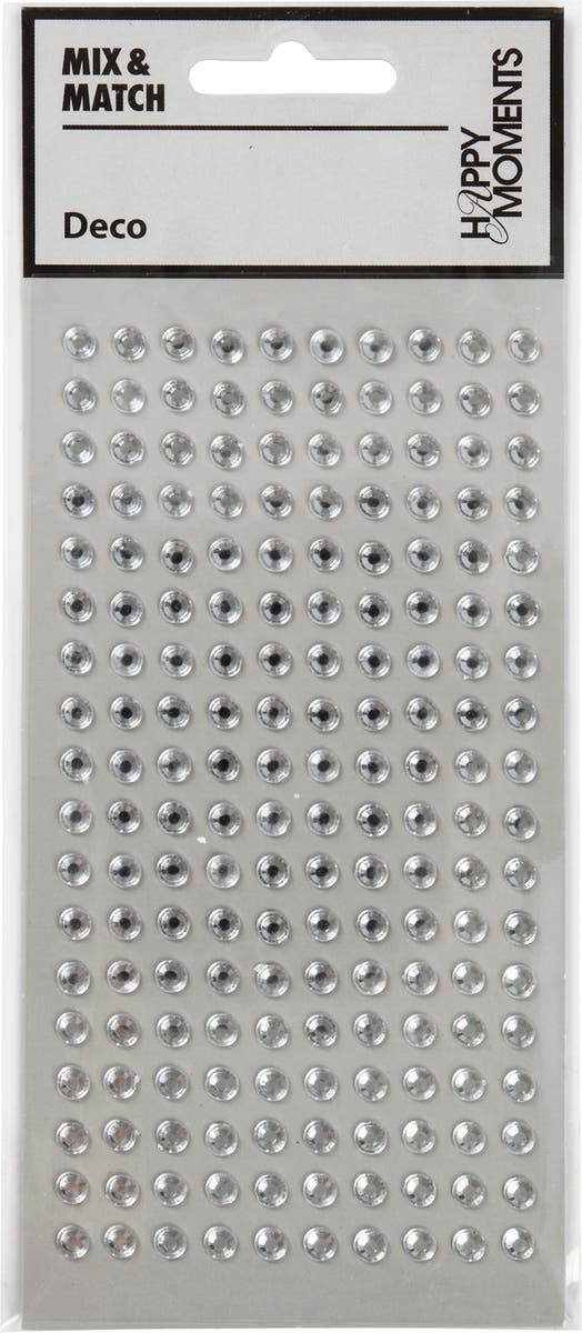 Självhäftande och runda rhinestones med facettslipad front och platt baksida.