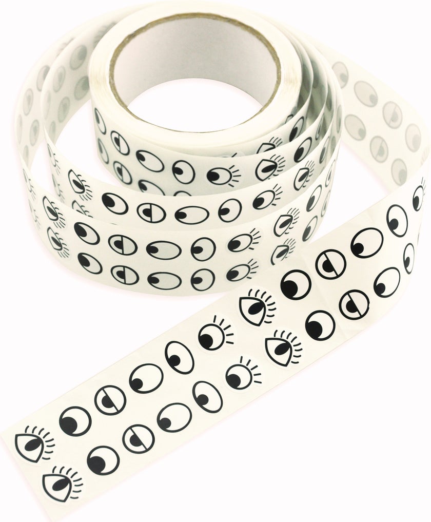 Självhäftande stickers "Ögon" på rulle, för pyssel i mixade former. Skapa personliga och annorlunda ansikten med dessa ögon. Låt fantasin flöda - finns inget som är fel eller rätt.
