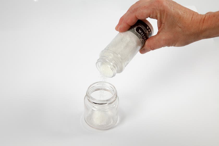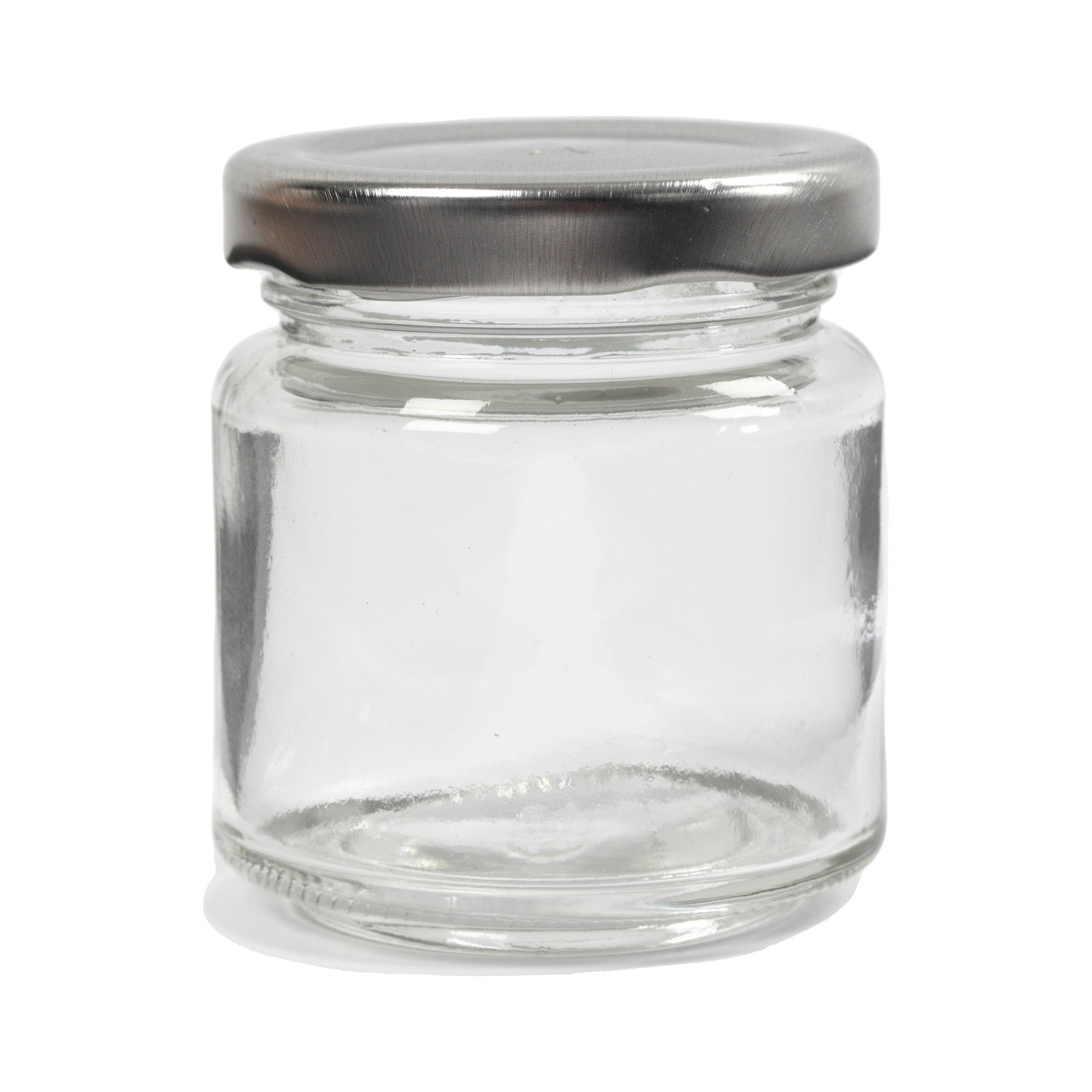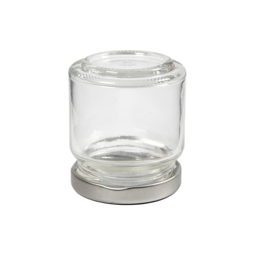 Glasburk/syltburk med silverfärgat skruvlock i metall. Dekorerar utsidan eller varför inte dekorera på insidan och gör din egen snöglob eller ljuslykta. Godkänd för livsmedel.