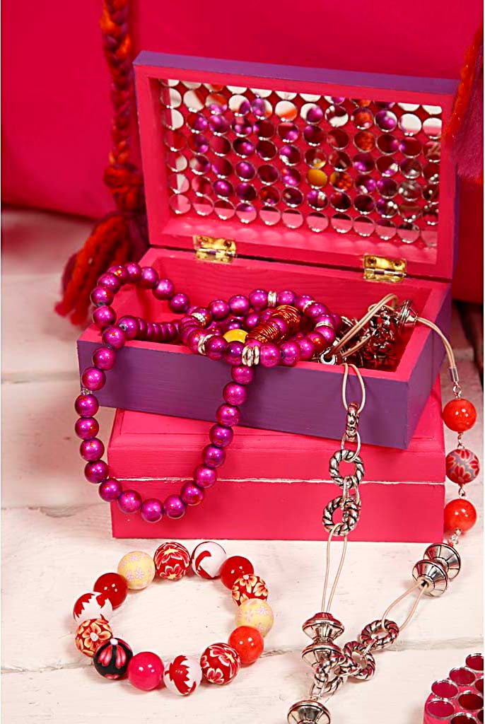 Smyckeask i furu. Träask med magnetlås. Asken kan dekoreras med både färg, pärlor, lera mm efter din egen fantasi och kreativitet.Pyssla fram unika askar med olika utseenden.
