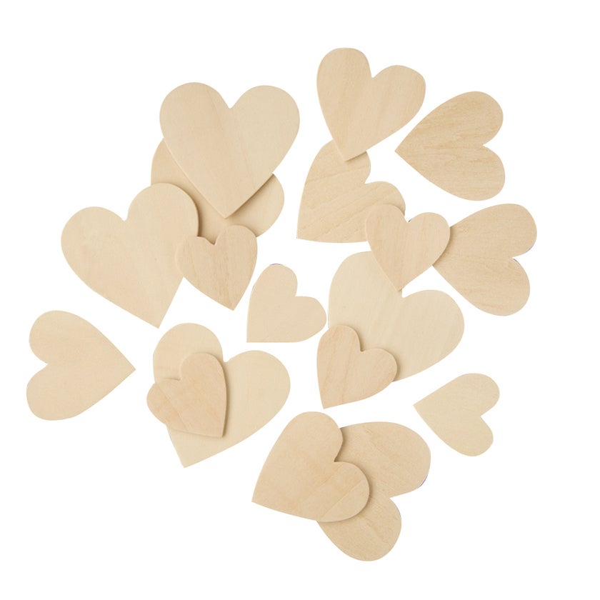 Dekorationsdetaljer i trä. Trähjärtan 30/40/50mm. Träfigurer med olika motiv för dekoration, som går alledeles utmärkt att rita, måla och dekorera för att sätta din touch på figuren. Låt fantasin flöda och använd alla möjliga olika tekniker och material som du kan hitta i vårt sortiment.
