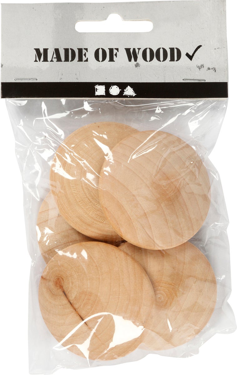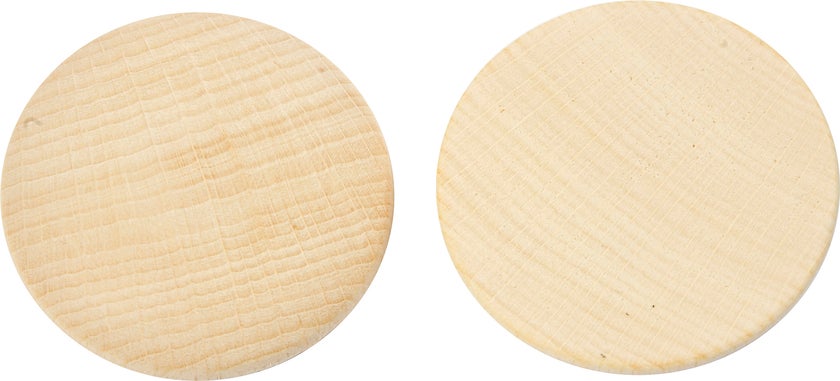 Träknappar med platt baksida och kuperad framsida. Användbara till en massa olika pyssel och dekorationer.