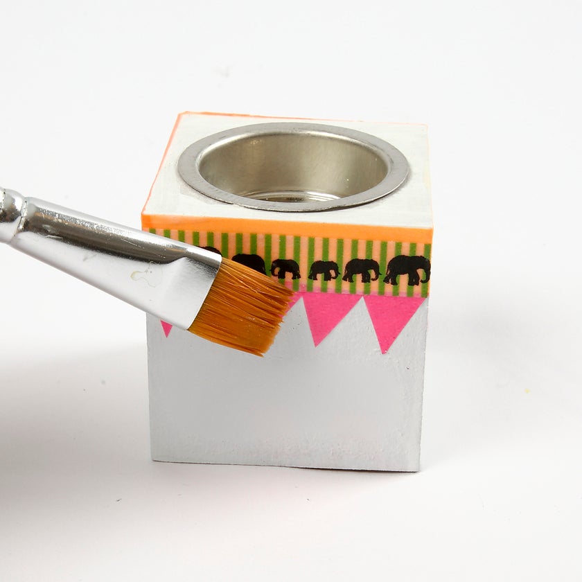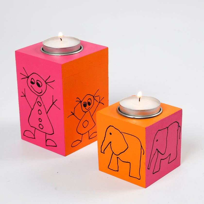 Ett kreativt pyssel för alla årstider - Värmeljusstakar i olika storlekar i MDF. Solid, fyrkantig värmeljusstake med metallinsats för ljuset med hålstorlek: 40 mm. Pyssla och dekorera dina personliga värmeljusstake som passar att ge bort i present - rita, måla och limma för att sätta din touch på ljusstaken. Låt fantasin flöda och använd alla möjliga olika tekniker och material som du kan hitta i vårt sortiment.