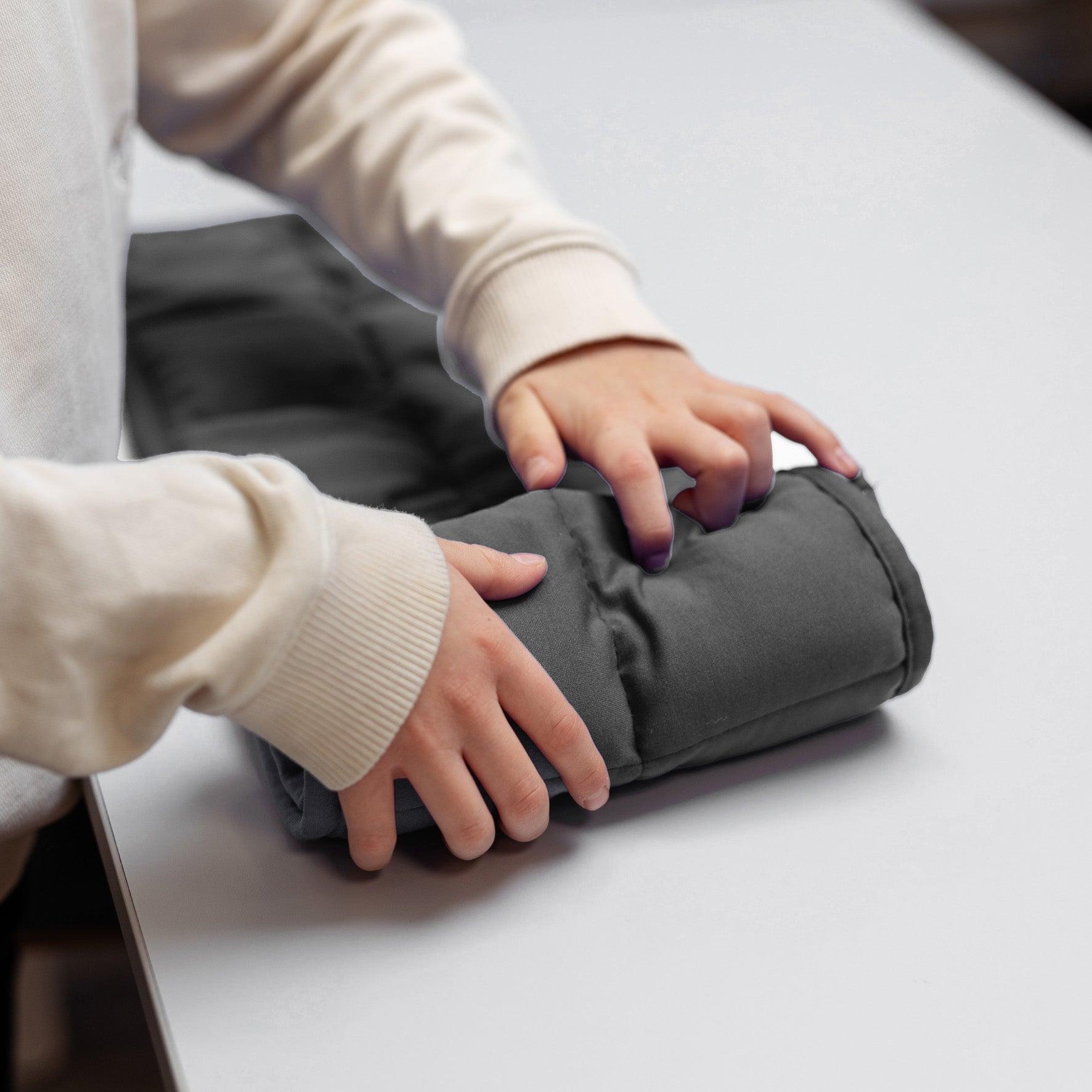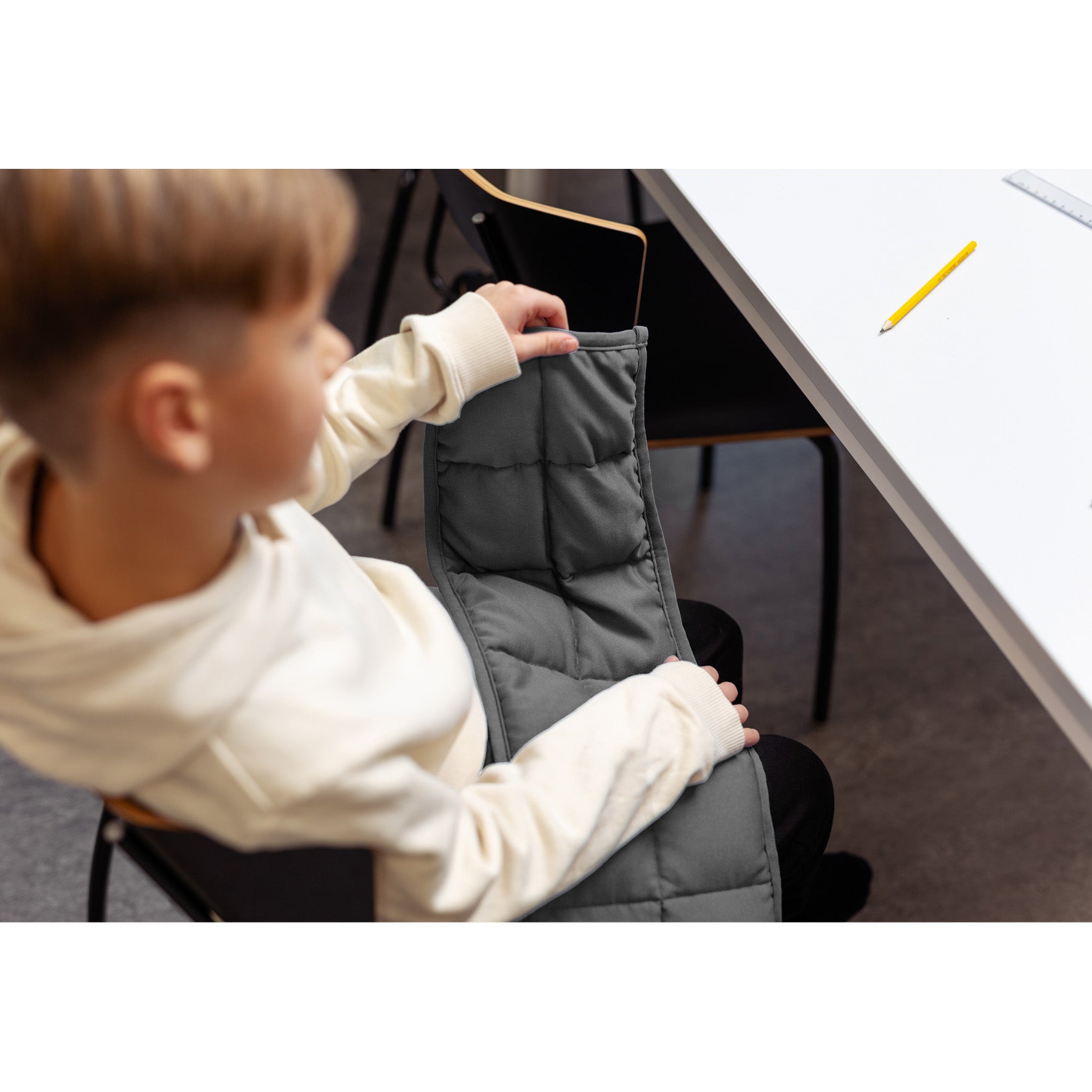 MyPauze tyngdfilt som bidrar till lugn och trygghet. Perfekt i klassrum, vilorum eller sinnesrum. Placera i elevens knä under lektionen för ökad koncentration och studiero. Filten kan minska både stress och ångest och hjälper till att sortera bort sinnesintryck.