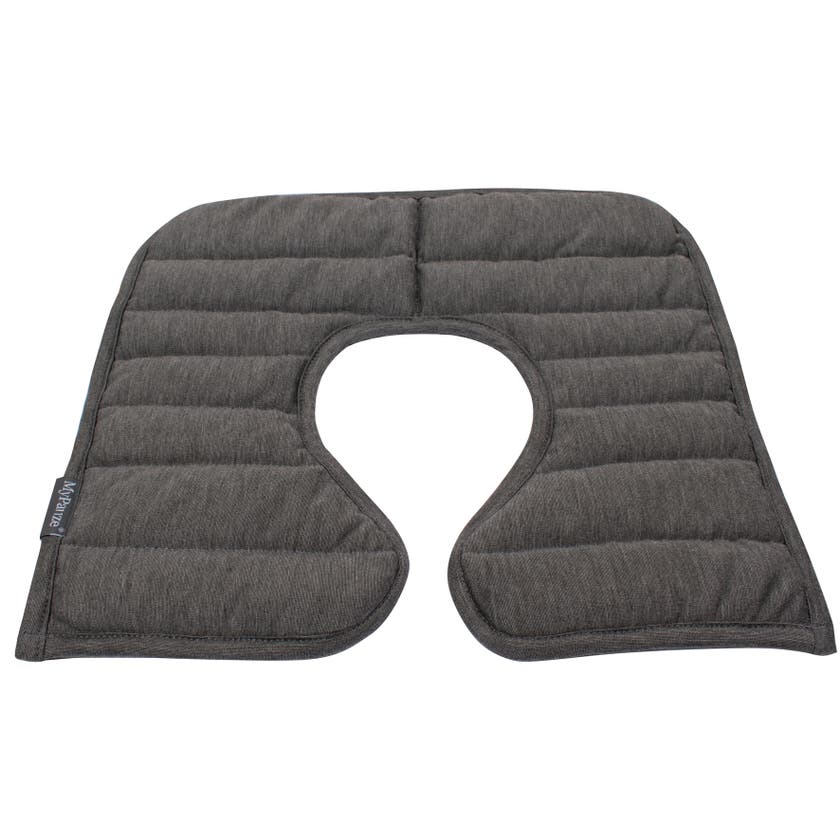 MyPauze tyngdfilt/kudde nacke – ergonomisk tyngdkudde anpassad för nacke och axlar som bidrar till lugn och trygghet. Nackkudden är ett sensomotorisk hjälpmedel som stimulerar beröringssinnet och ger en avslappnande känsla. Tyngden på axlar och nacke kan hjälpa eleven att behålla koncentrationen och skapa en ökad studiero.