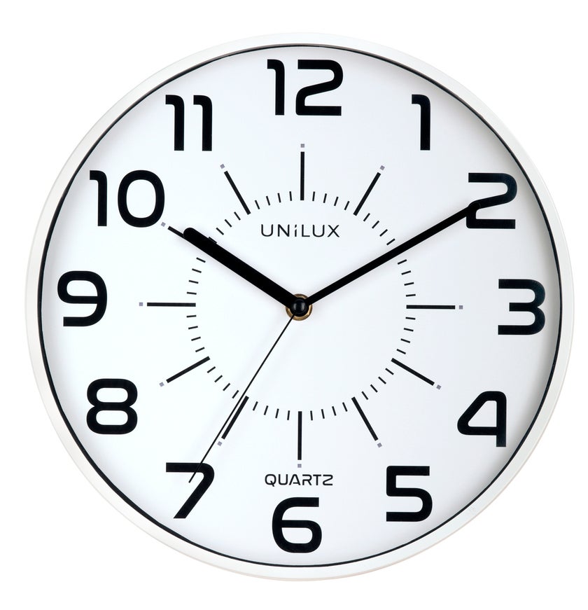 Väggklocka POP 300 mm. Quartz-klocka med hög precision med en avvikelse på mindre än en sekund över en period på sex år. Klockan har en stor urtavla vilket gör den lätt att läsa på ett avstånd på upp till 30 meter. Vit urtavla med svarta siffror och visare.