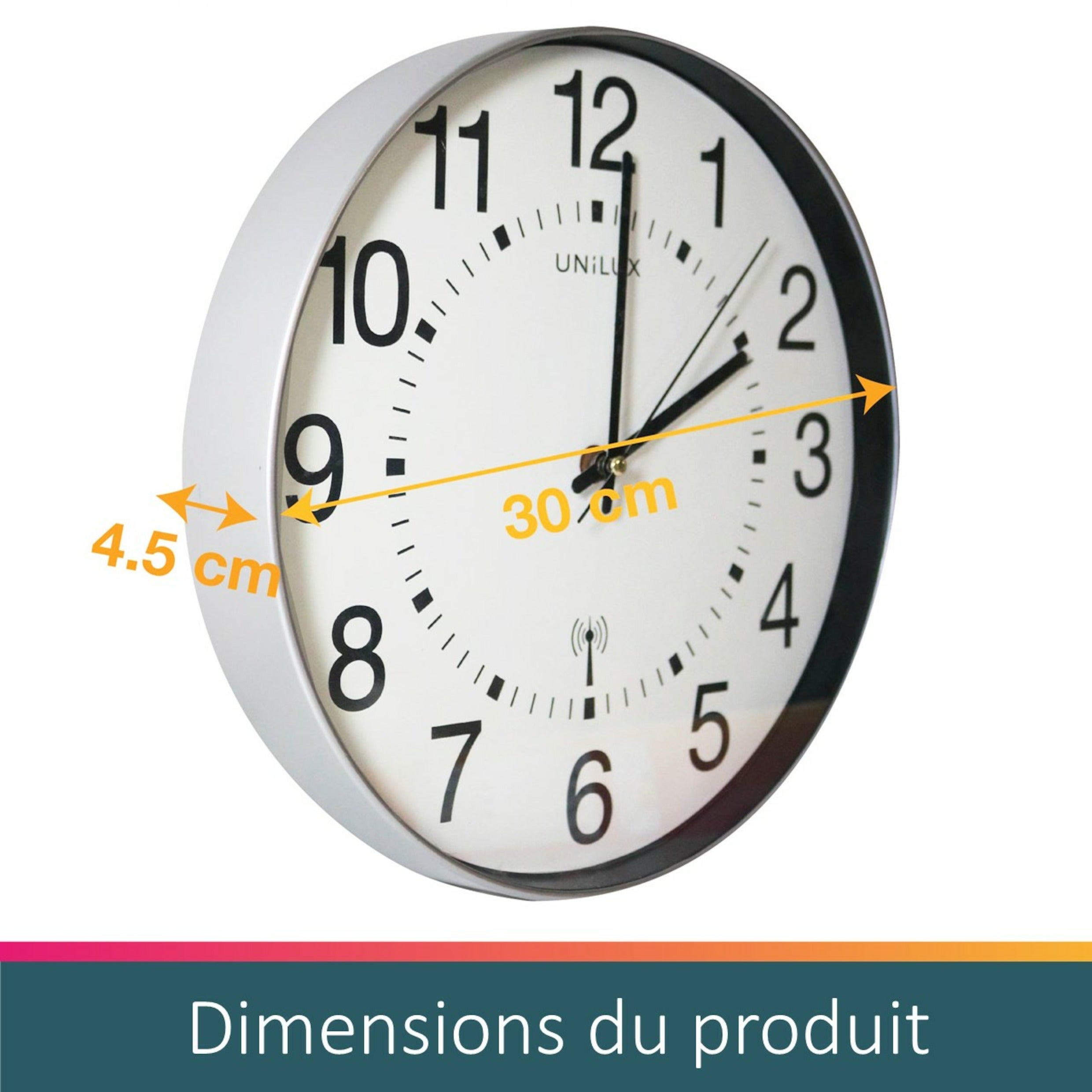 Väggklocka Wave Radiostyrd 300 mm. Radiostyrd med extremt hög precision, max. 1 sekunds avvikelse efter en miljon år. De stora arabiska siffrorna är lätta att läsa, oavsett var du är i rummet. Läsbar upp till 150 meter. Utrustad med skyddsglas för att undvika dammbildning och blekning på grund av solljus.