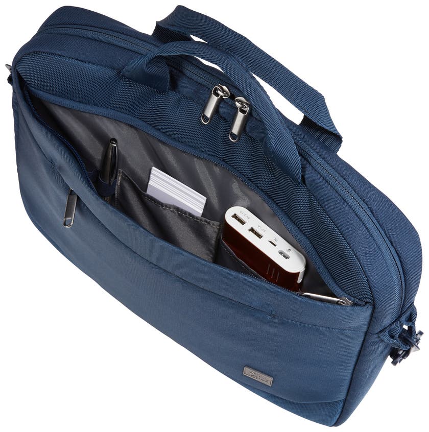 Datorväska Advantage 14''. Slimmad kompakt väska med vadderat utrymme för en laptop upp till 14". Dedikerad ficka för en 10,1"" tablet. Rymlig framficka med organisationspanel för pennor och småelektronik samt gott om plats för skrymmande laddkablar. Frontficka med dold dragkedja håller telefonen säker och tillgänglig. Designad filficka håller dokument separerade från elektronik. Avtagbar, vadderad axelrem justeras för anpassad passform.