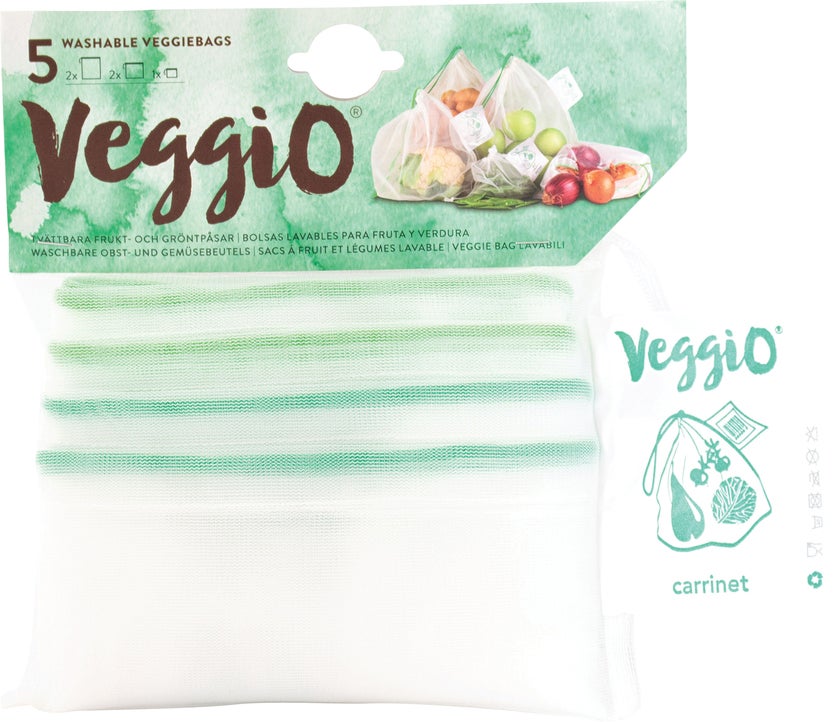 Eftersom Veggio är återanvändningsbar är den oerhört miljövänlig och sparar hundratals små plastpåsar för ett hushåll varje år. Veggio är en återanvändningsbar frukt och gröntpåse som är godkänd för matförvaring. Du kan skölja rakt igenom påsen och fortsätta ha frukt- och grönt i den på bänken eller i kylskåpet. Veggio är tvättbar och mögelsporer från frukt och grönt går bort om du tvättar för hand eller i maskin.