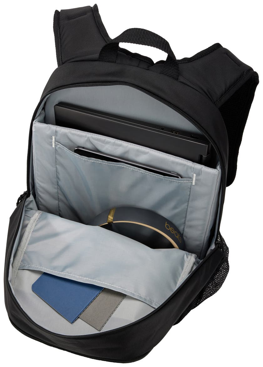 Snabbt åtkomlig frontficka gör det lätt att komma åt saker som din telefon eller andra småsaker. Inre kabelförvaringsficka förhindrar att små kablar trasslar in sig. Mesh sidofickor förvarar bekvämt vattenflaskor inom räckhåll. Organiseringspanelen gör det lätt att hitta dina mindre tillbehör och de inbyggda pennhållare ser till att du aldrig hindras från att skriva ner viktiga anteckningar.