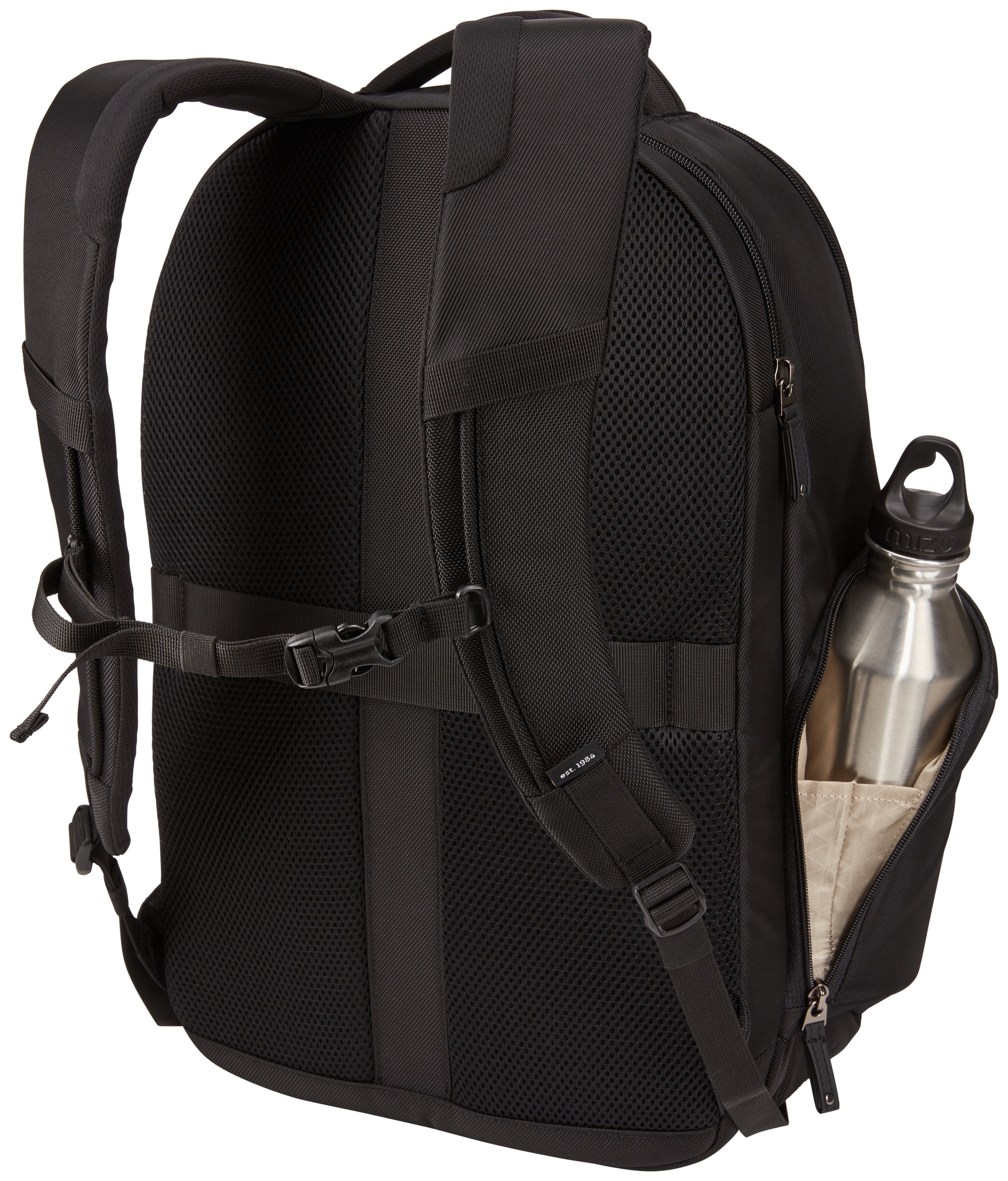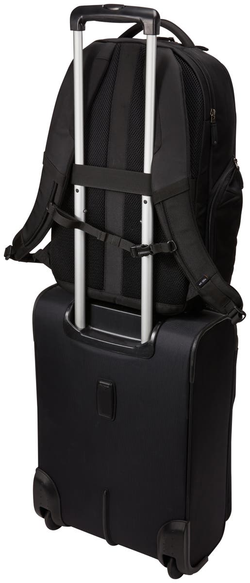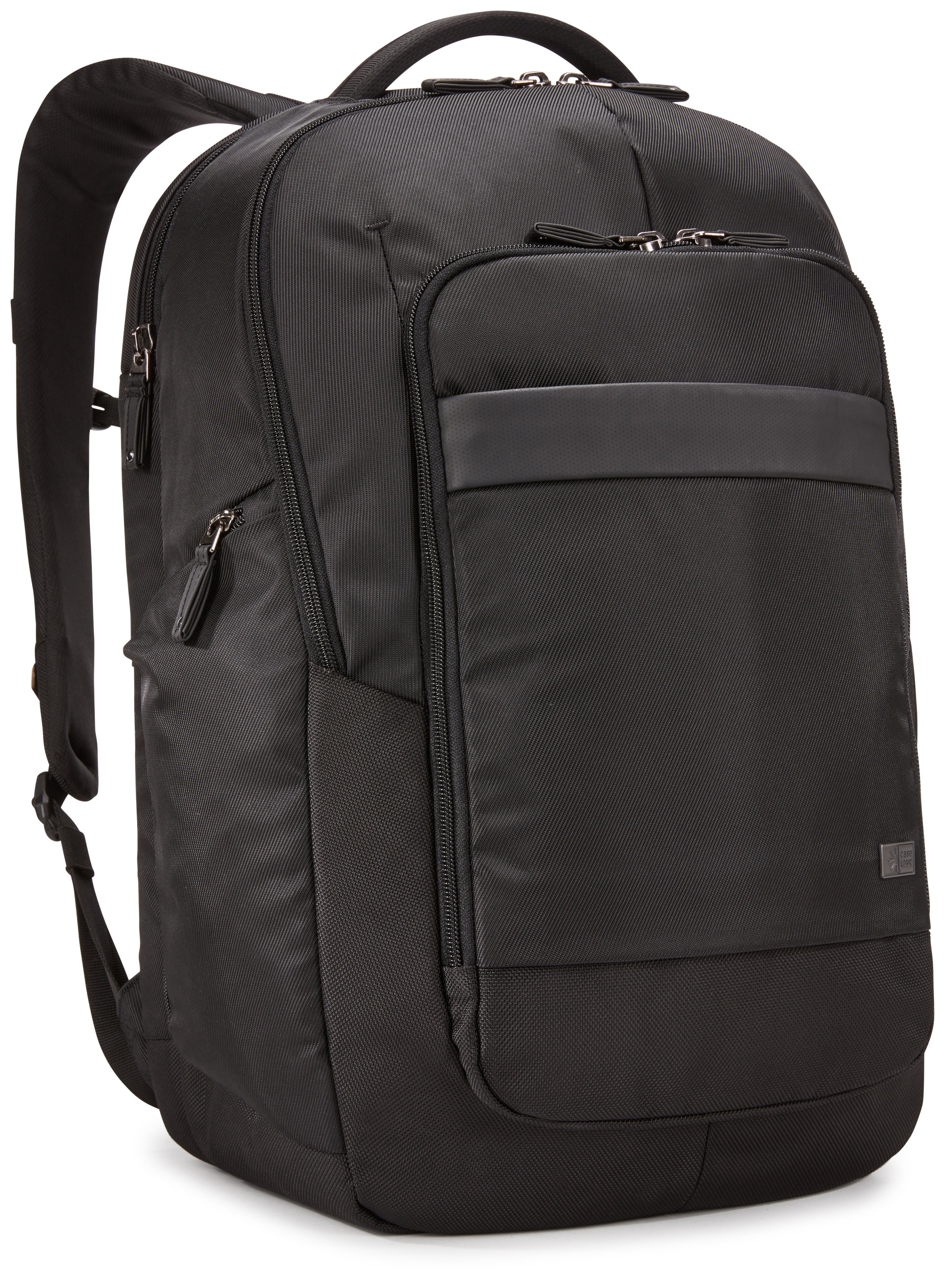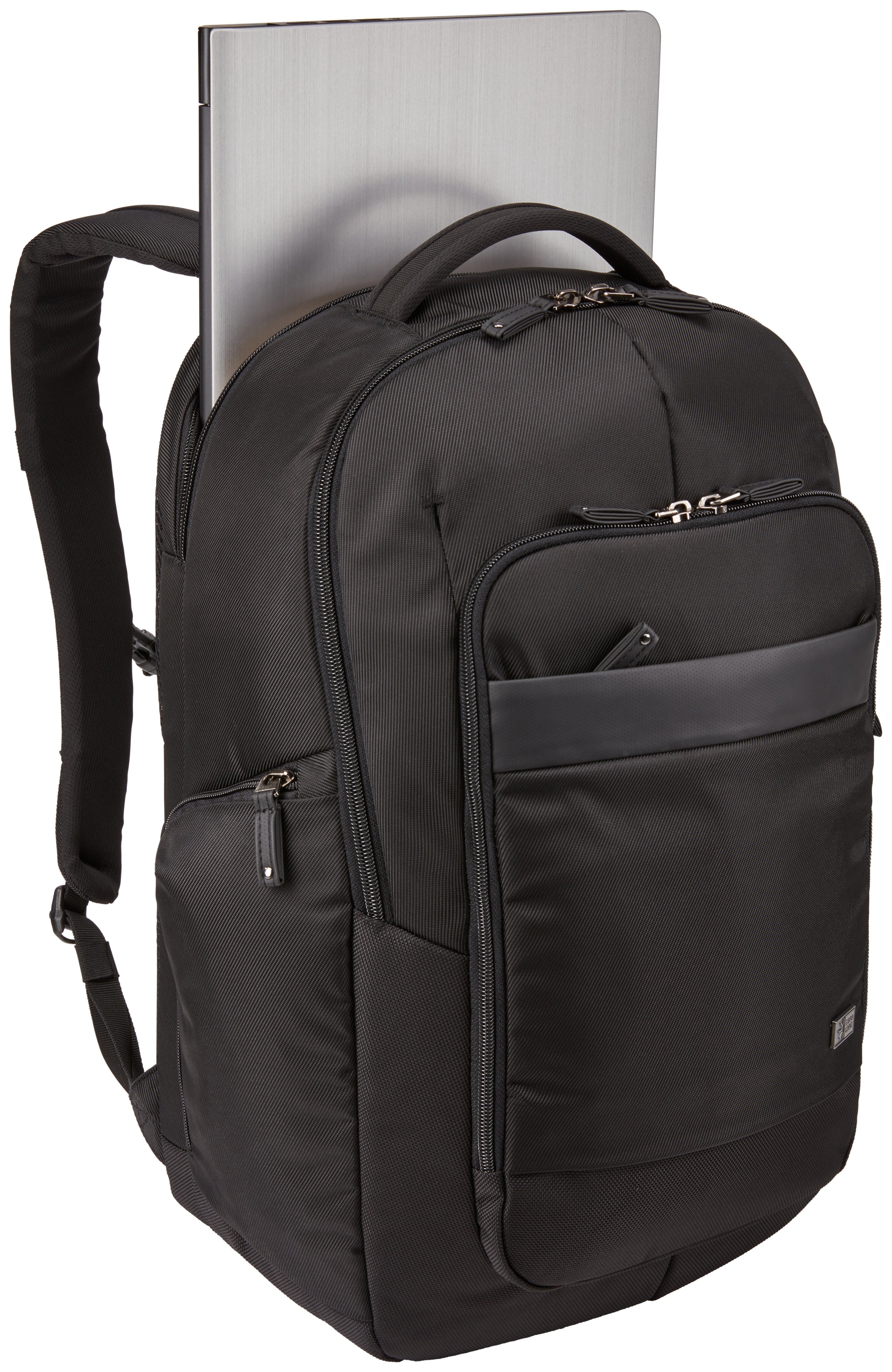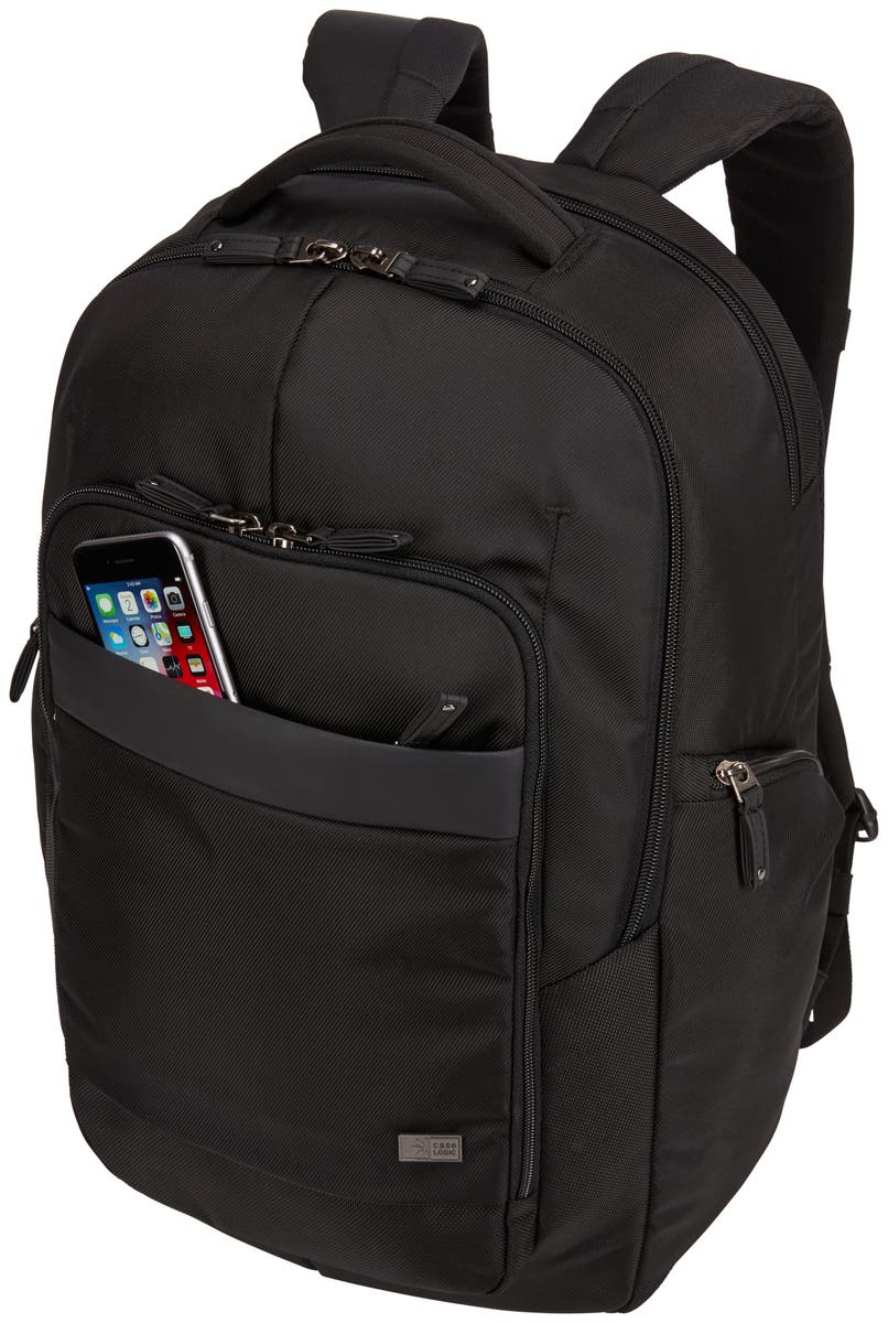 Rymligt huvudfack med strukturerade glidfickor för surfplatta, mappar eller papper, plus en säker nätficka med dragkedja för kablar och tillbehör. Generös organisationspanel med säker ficka med dragkedja, flera fack för mindre elektronik, kablar eller andra tillbehör, visitkort, fickpennor och nyckelbricka. Bekvämt att bära med mjukt jerseyfodrat handtag, tjockt vadderade axelremmar och en quiltad ryggpanel i luftnät. Snabbåtkomst till ficka med dragkedja på framsidan av ryggsäcken ger bekväm förvaring för små föremål när du är på språng.