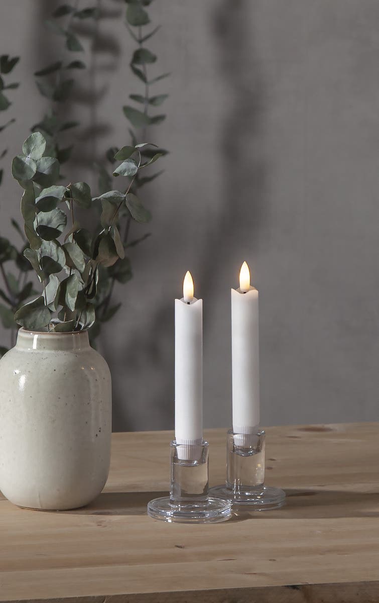 Antikljus Flamme 150 mm 2-pack. 2-pack korta antikljus. Tillverkade utav äkta vax med en mycket naturtrogen låga som lyser med varmvitt sken. De har en inbyggd timer som gör det enkelt att bestämma när de ska lysa. Undvik att ställa dem i direkt solljus då de kan smälta av värmen.
