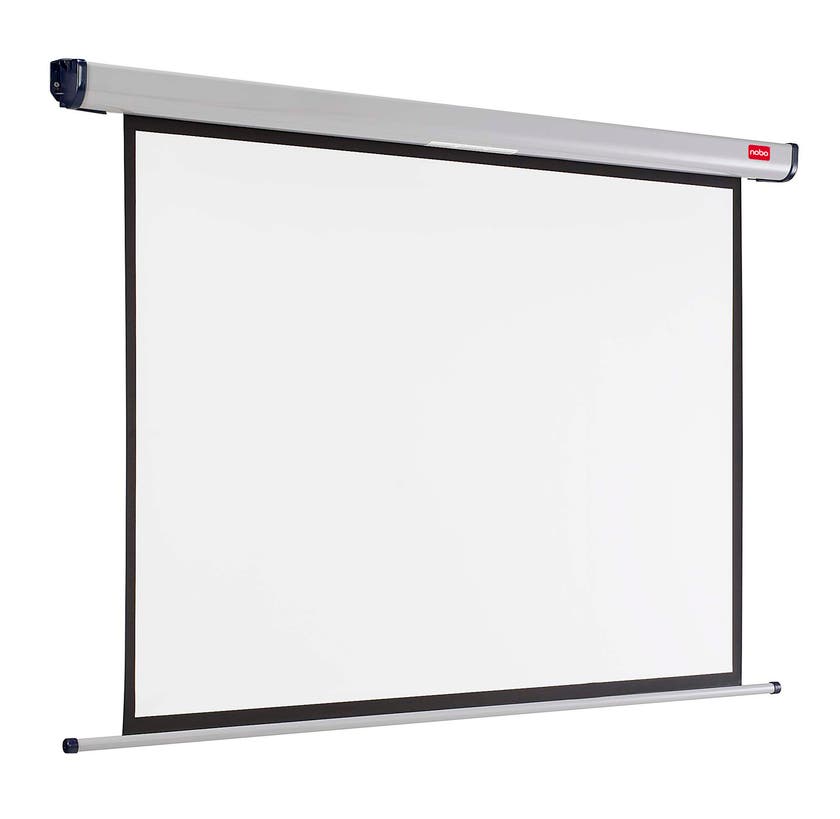 Matt, vit projektorduk som passar alla typer av presentationer. Svart baksida för att undvika att det lyser igenom duken. Metallhölje med en sprint för att säkerställa en lätt och säker ihoprullning av duken. Montering på vägg eller tak. Monteringssats för vägg som gör att man kan hänga duken 15cm ut från väggen finns att köpa som tillval.