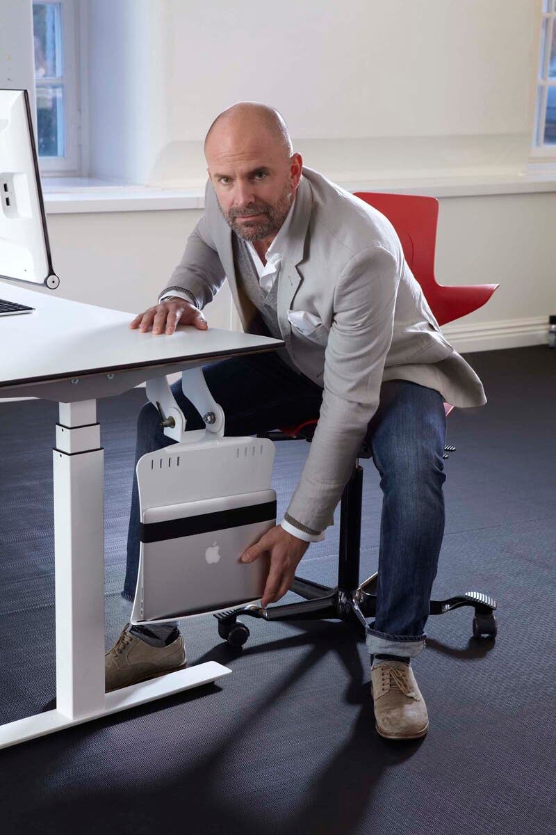 Datorhållare TwistIT - Smart produkt som med fördel placeras utan glidskena långt ut mot kanten utav ditt skrivbord på undersidan. Nu kan du maximera ditt skrivbord till andra tillbehör som behövs till arbetet under dagens lopp. Tar minimalt med plats och stör ej benutrymmet.