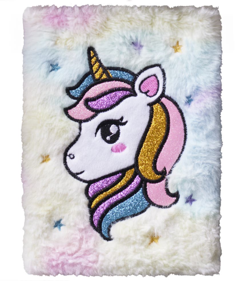 Lurvig och färgglad anteckningsbok i form av en gullig enhörning. Anteckningsboken Unicorn är i A5-format och innehåller 80 linjerade sidor.