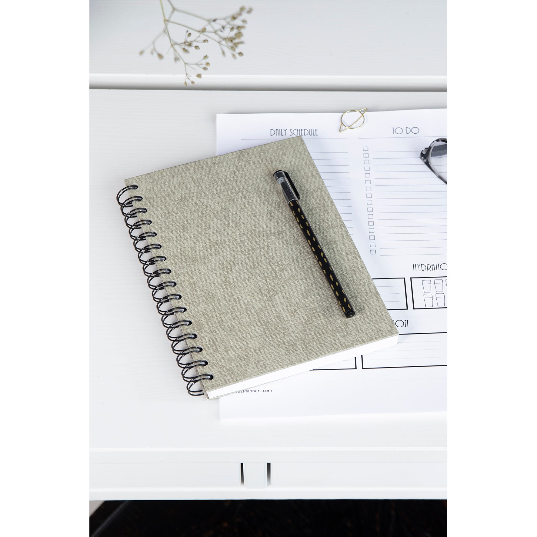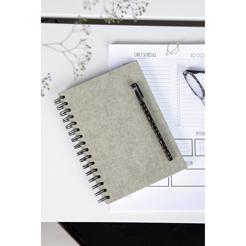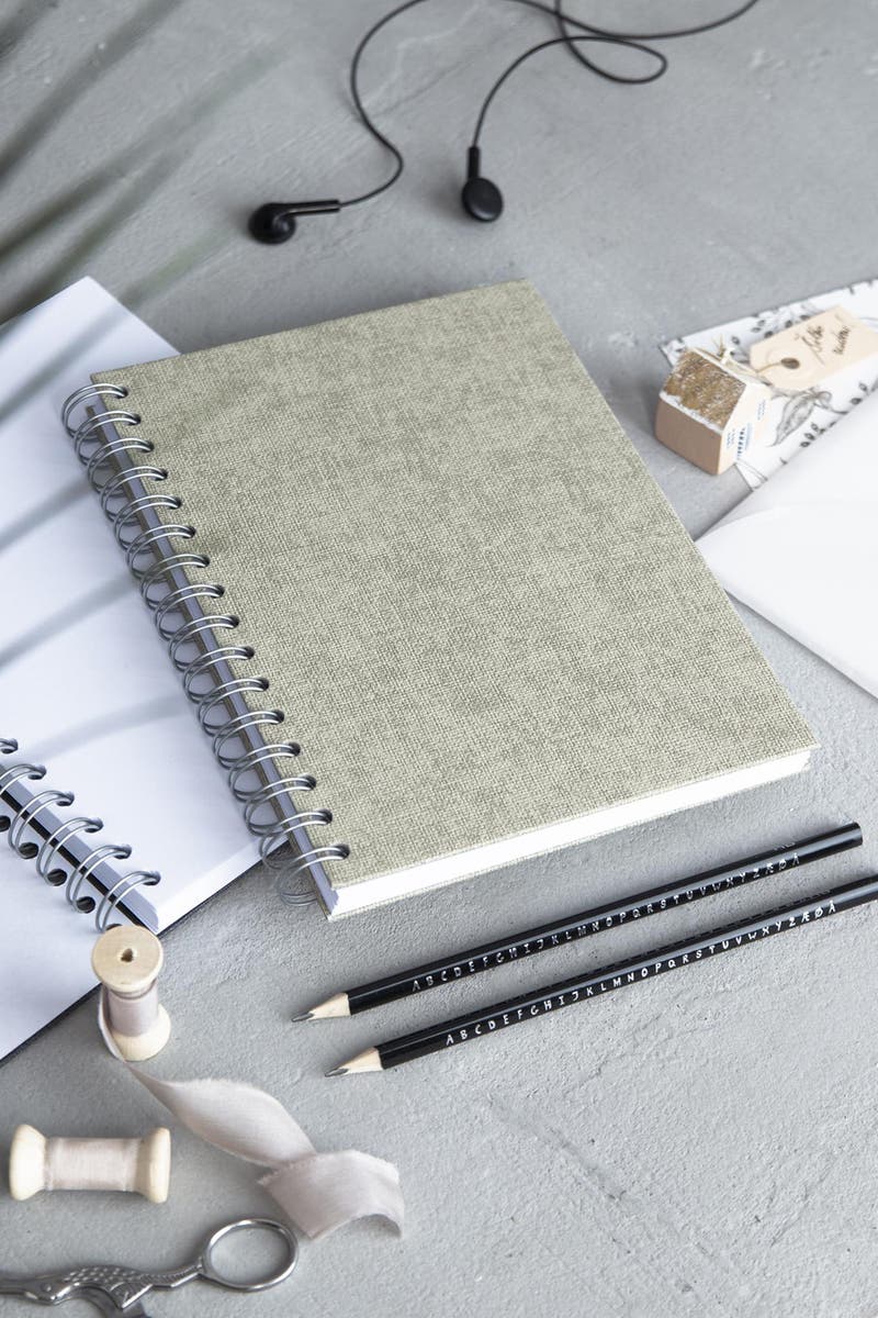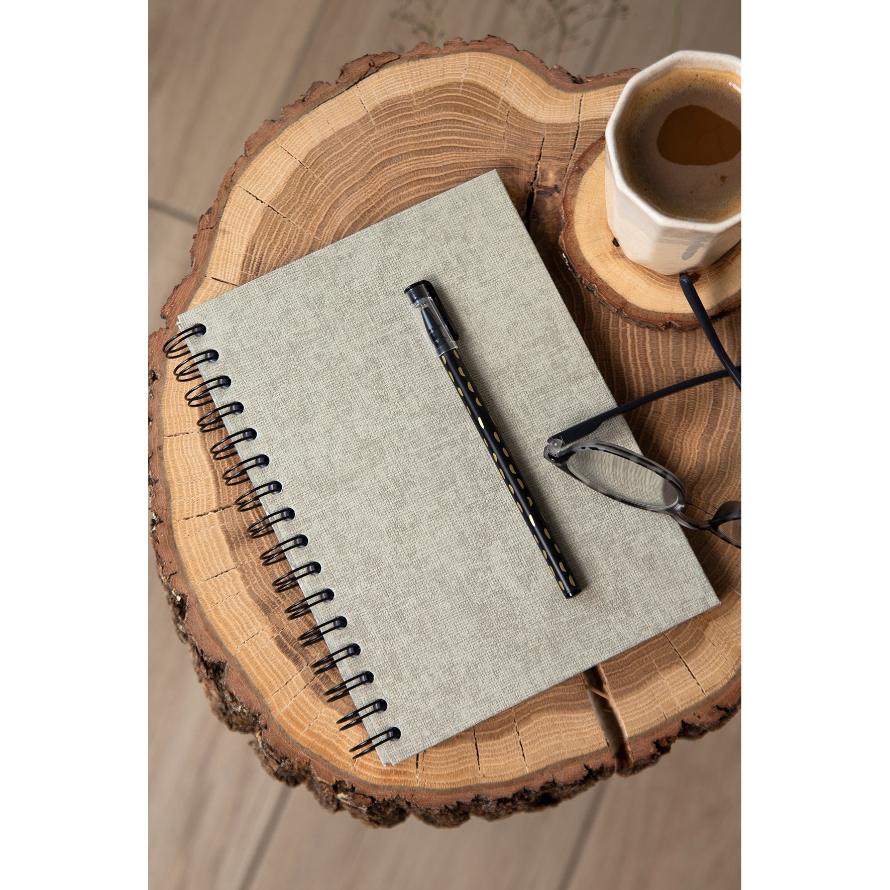 Snygg spiralbunden olinjerad anteckningsbok från Bigso Box of Sweden med canvas liknande ytskikt som är tillverkat av återvunnet papp.