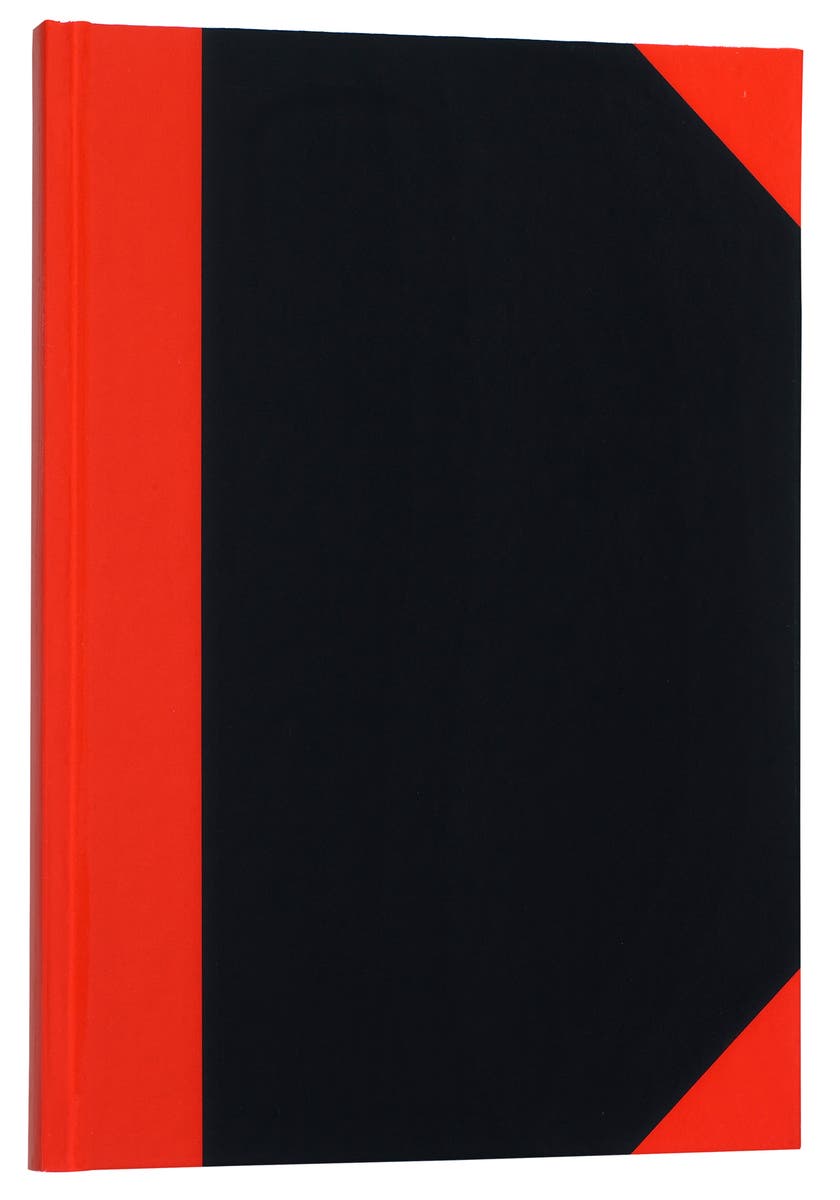 Kinabok - Inbunden anteckningsbok med hårda pärmsidor i kartong och linjerade blad. Svarta utsidor med röda förstärkning av hörn och rygg. Den limmade och sydda ryggen ger lång hållbarhet.