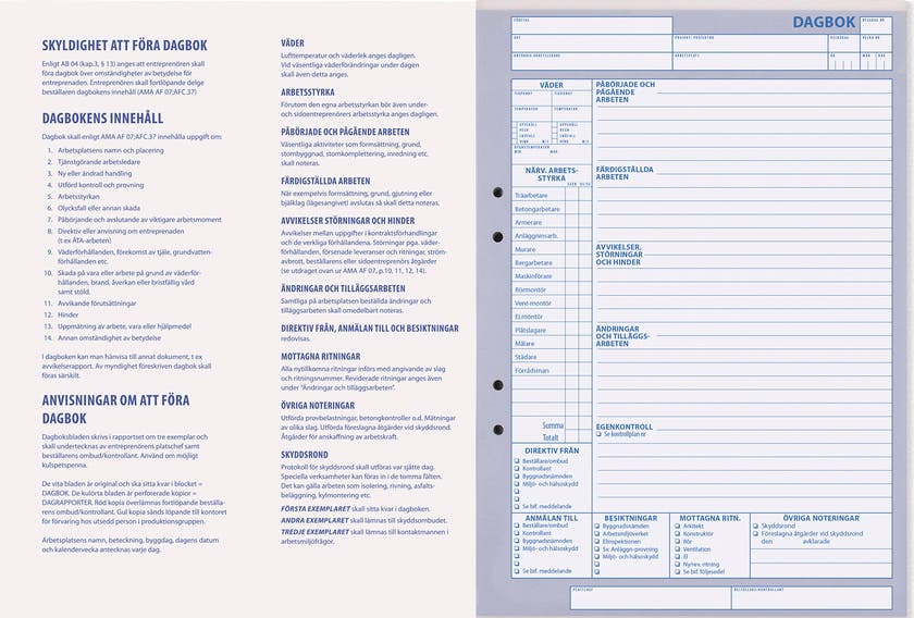 ![]() | 2610105 | Byggdagbok A5 30 dagars | A5 | 30 dagar förenklad | I lager 1-3 vardagar | 247.50 kr/st | |