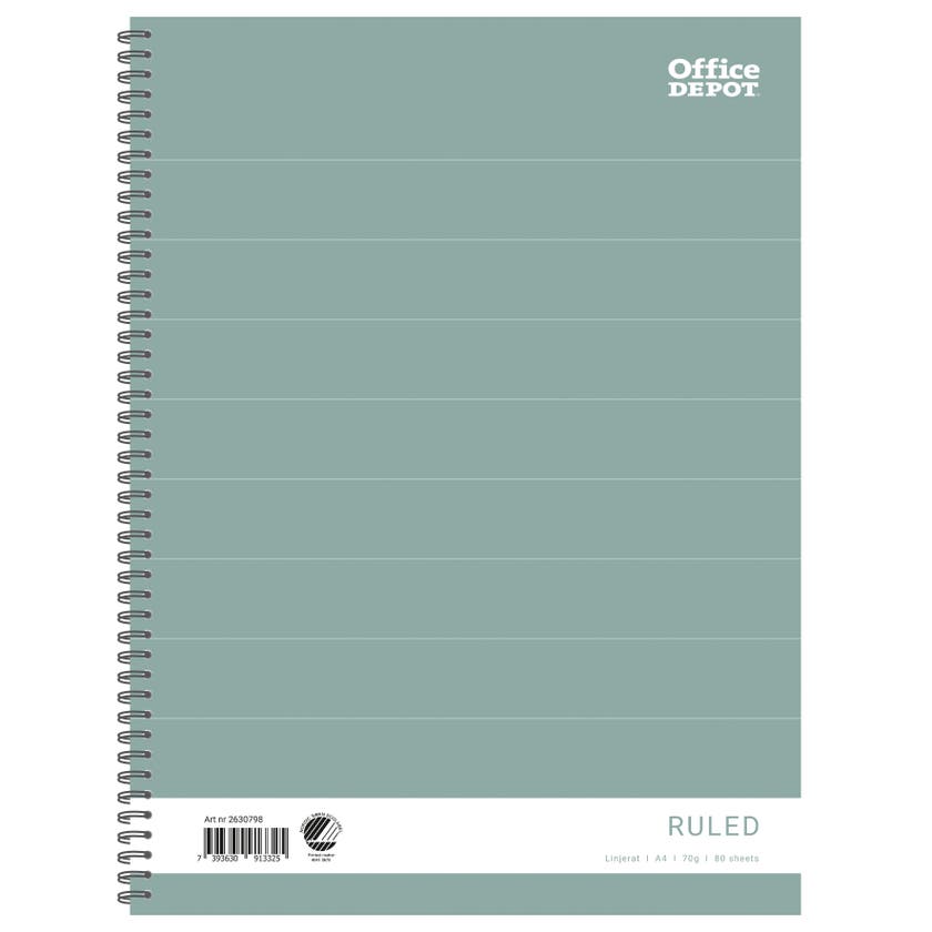 Office Depot klassiska anteckningsblock i A4 med spiral i vänster sida. Populära skrivblock som är används av alla på kontoret, hemmet och i skolan.