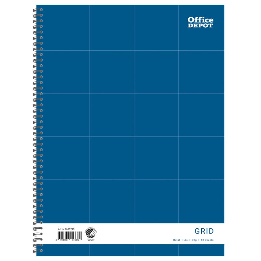 Office Depot klassiska anteckningsblock i A4 med spiral i vänster sida. Populära skrivblock som är används av alla på kontoret, hemmet och i skolan.