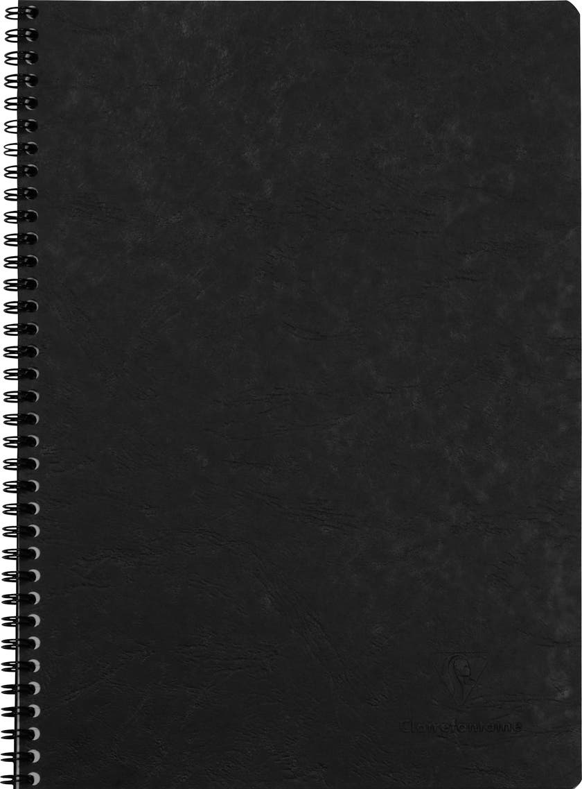 Clairefontaine kollegieblock AgeBag med dubbelspiral på vänster sida. Djupfärgad kartong med läder effekt. Anteckningsblocken har papper av hög kvalitet.