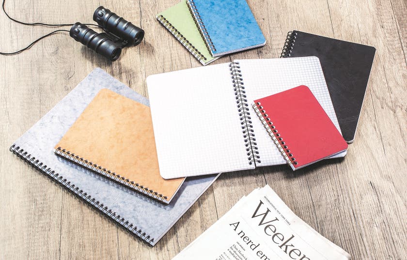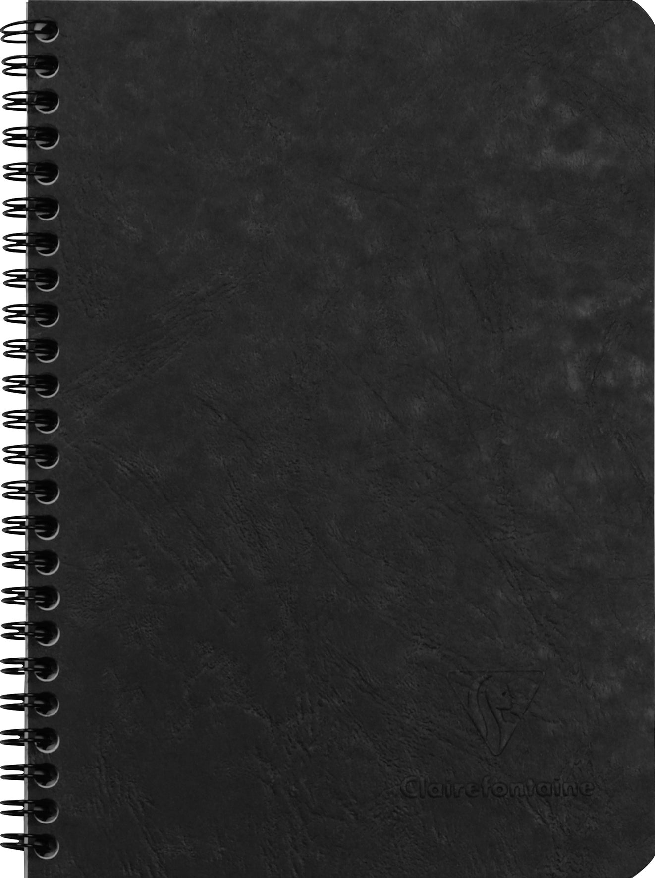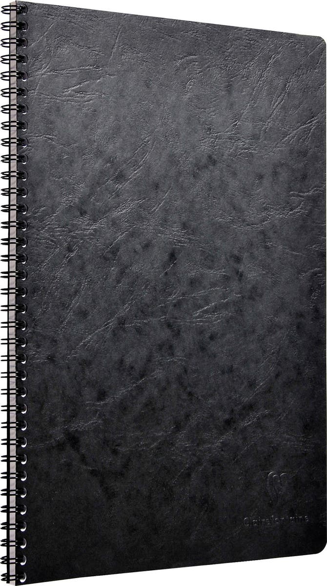 Clairefontaine kollegieblock AgeBag med dubbelspiral på vänster sida. Djupfärgad kartong med läder effekt. Anteckningsblock med papper av hög kvalitet.