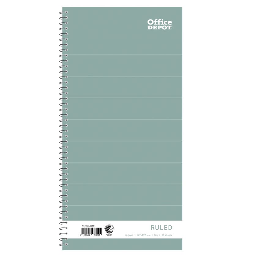 Spiralkladd Office Depot Plus med spiralbunden långsida. Kollegieblocken är avsedda för användning i skolan, hemma och arbetsplatsen. Spiralblocken är av riktigt bra kvalitet och passar alla vanliga skrivredskap. Anteckningsblocket är miljömärkt.