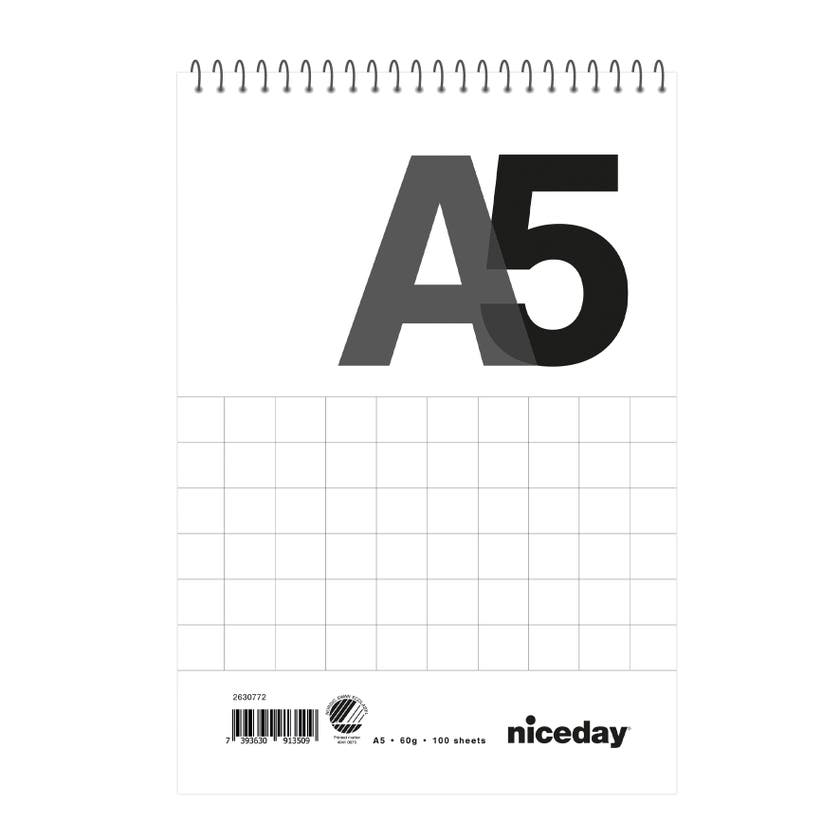 Spiralblock Niceday är ett anteckningsblock av 60 gram vitt papper. Spiralbundet i överkant.