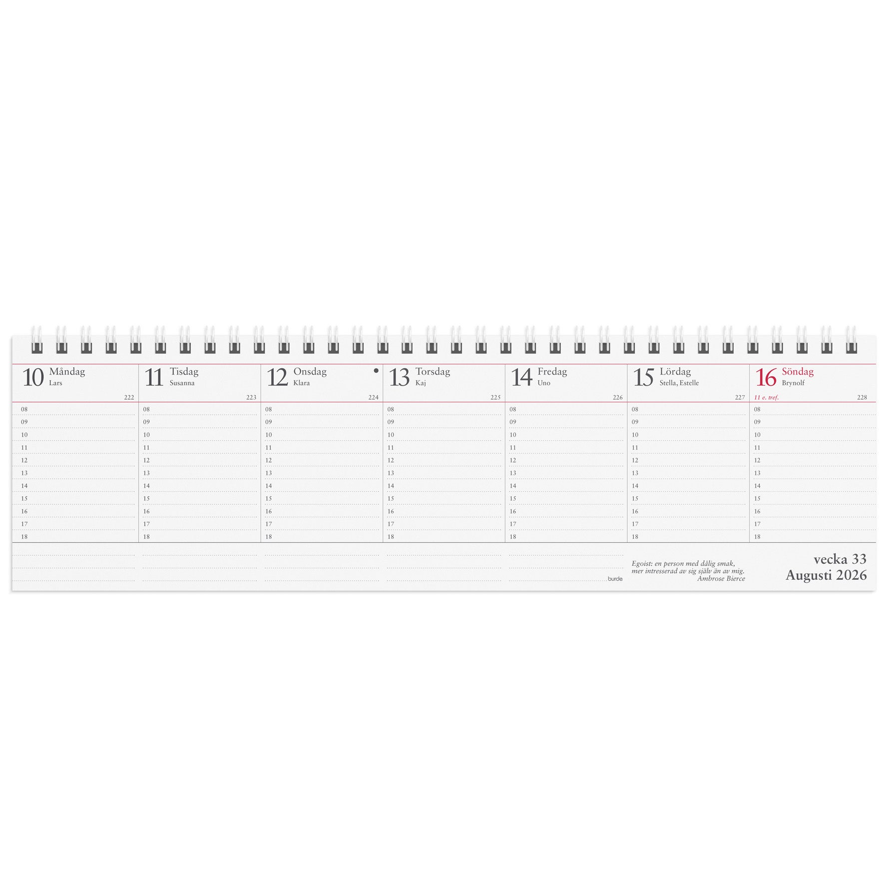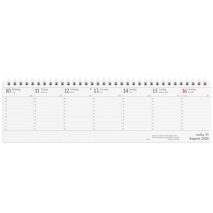 Veckoalmanackan från Burde, spiralbunden och med omslag i kartong.