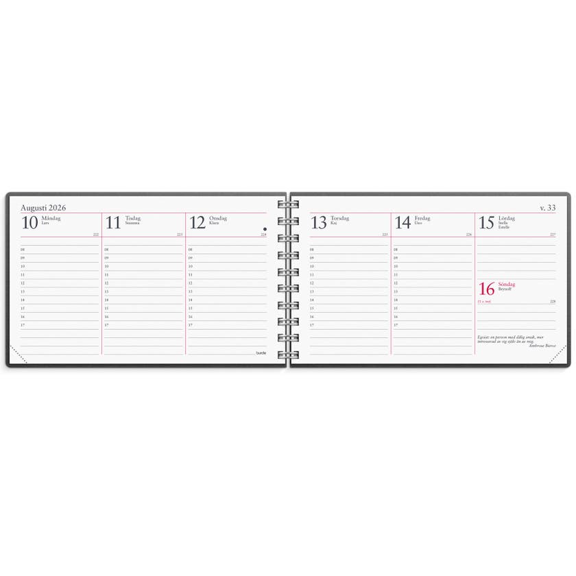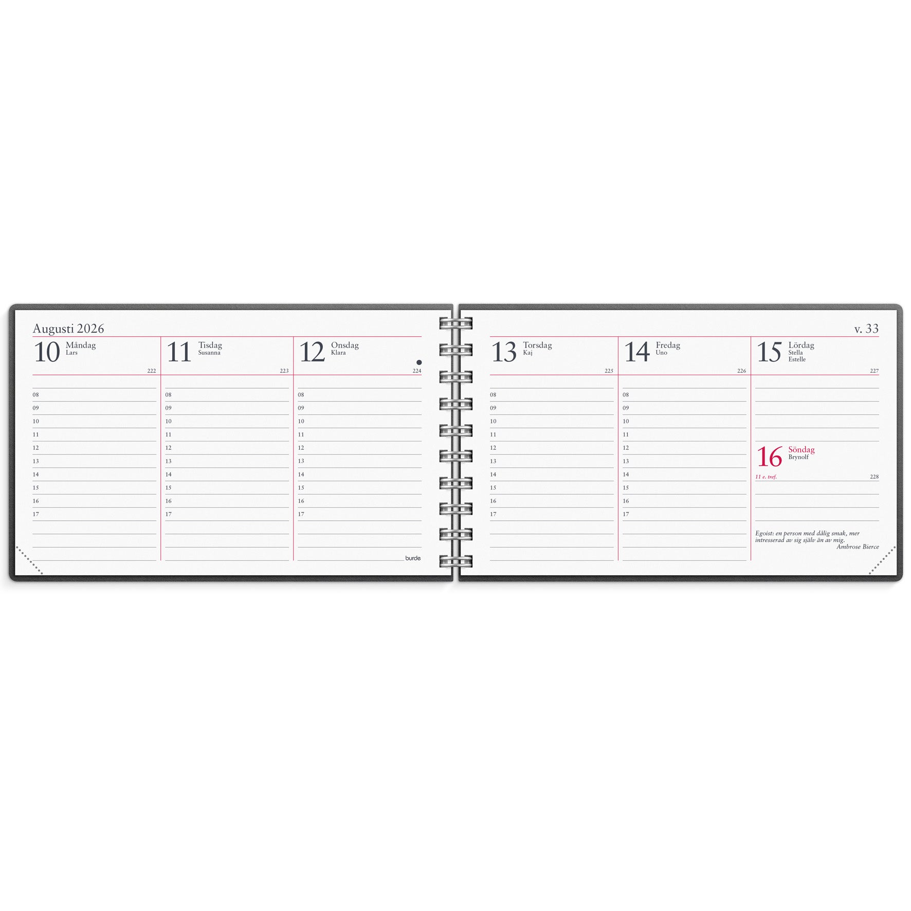 Veckokalendern Eco Line från Burde, spiralbunden och med omslag i återvunnen kartong.