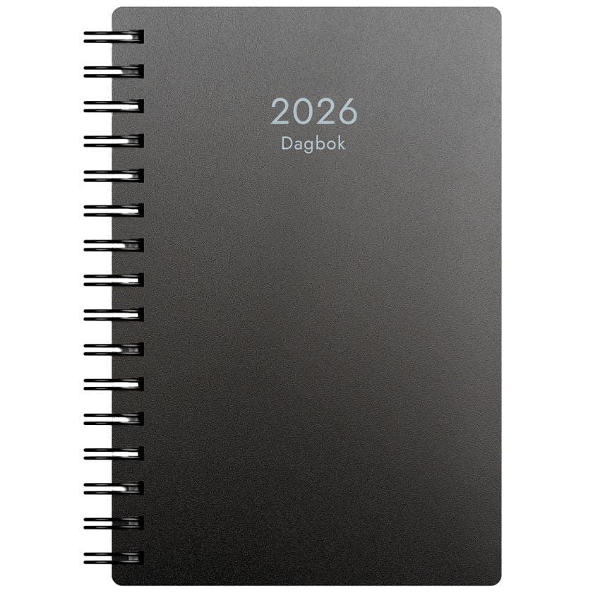 Kalender Dagbok 2026 från Burde, spiralbunden och med omslag i återvunnen plast.