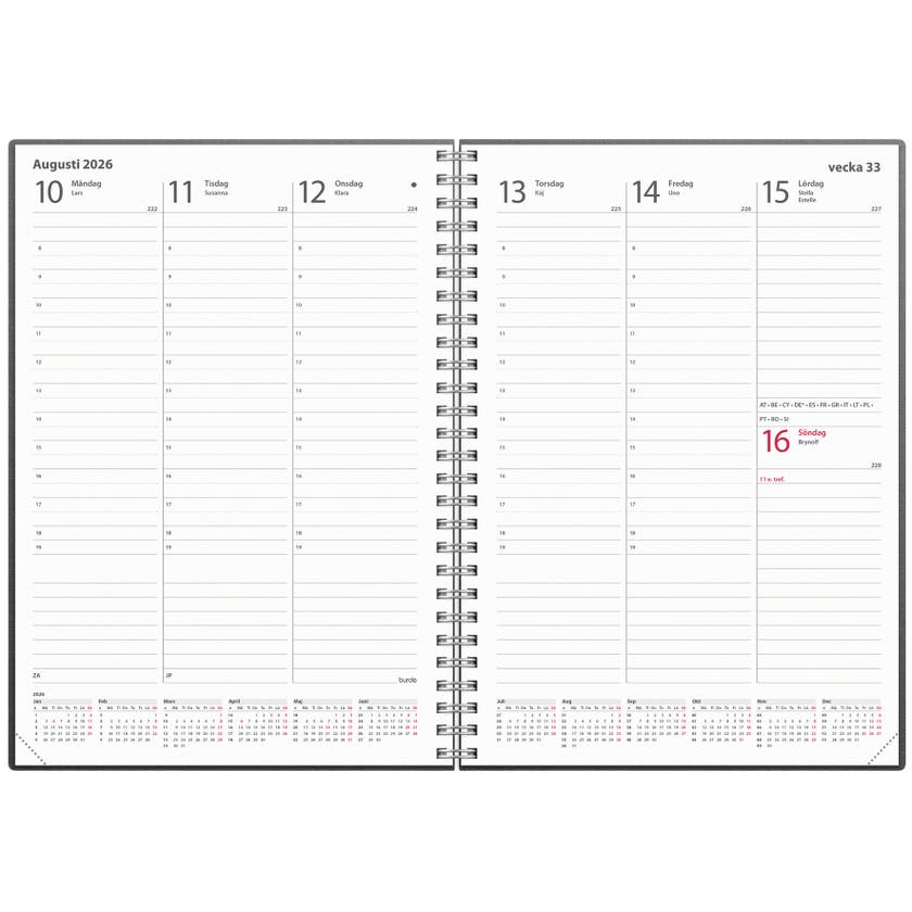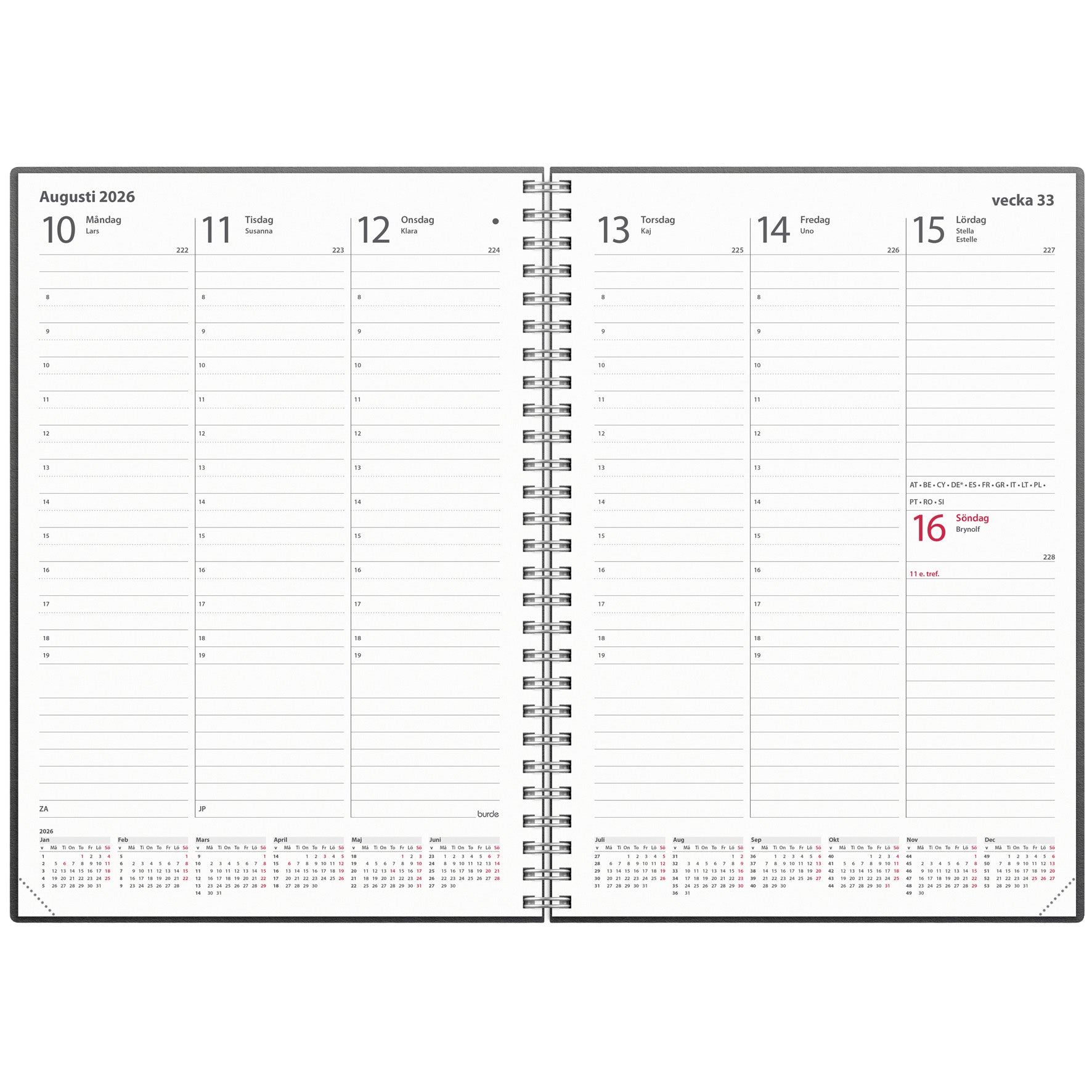 Kalender Weekly 2026 refill från Burde, spiralbunden och med omslag i kartong.