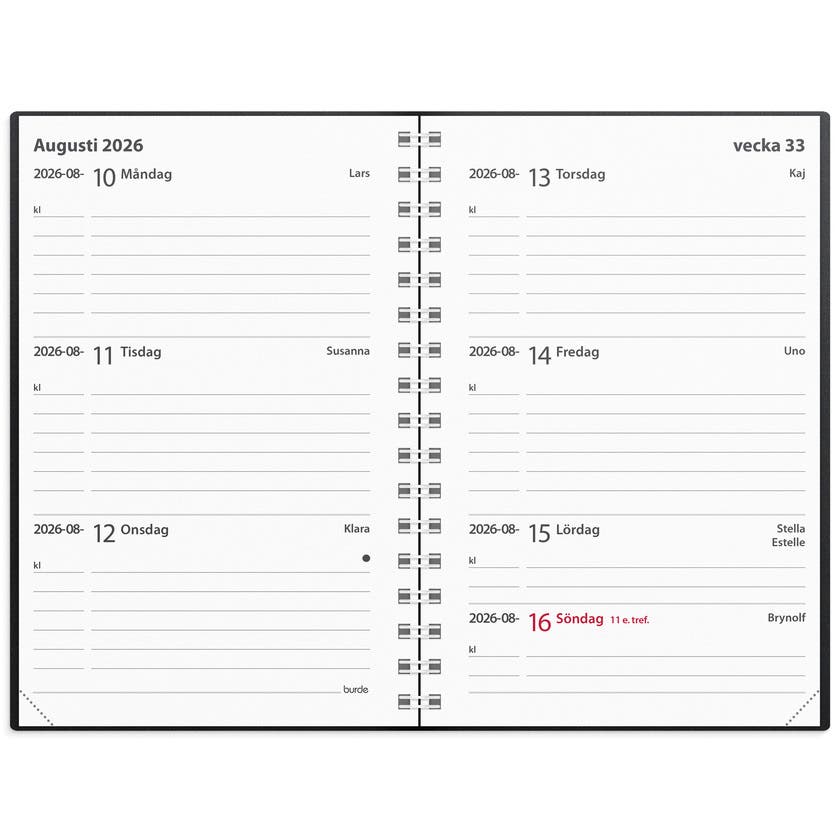 * Innehåll: Kyrkliga helgdagar, Flaggdagar, Helgdagar/aftnar, Månfaser, Namnsdagar, Internationella helgdagar översikt, Telefonregister, Temadagar/händelser, Årsöversikt/årsöversikter, Årsplan/årsplaner.
