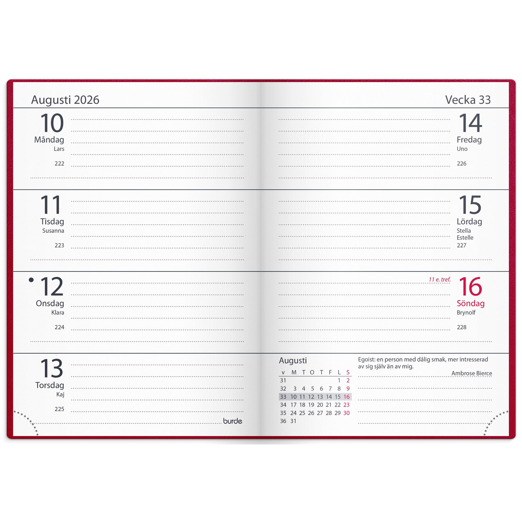 Innehåll: Atlas, Kyrkliga helgdagar, Flaggdagar, Helgdagar/aftnar, Månfaser, Namnsdagar, Internationella helgdagar översikt, Telefonregister, Temadagar/händelser, Årsöversikt/årsöversikter, Årsplan/årsplaner.