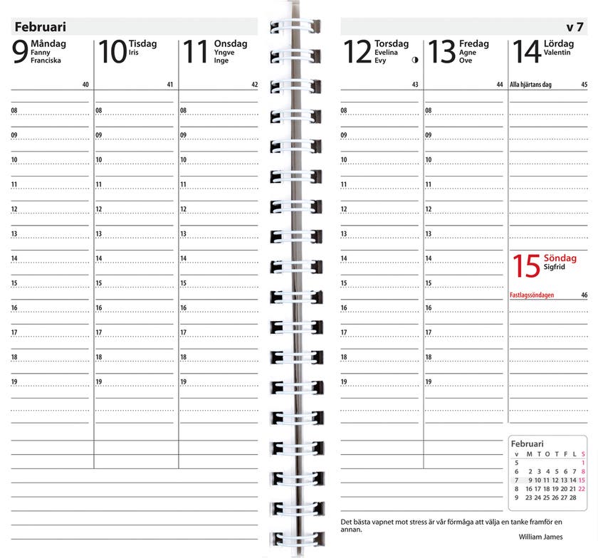 * En spiralbunden kalender Interplano II med veckouppslag, hålad blankettdel, att göra, dagplan, anteckningar och adresser