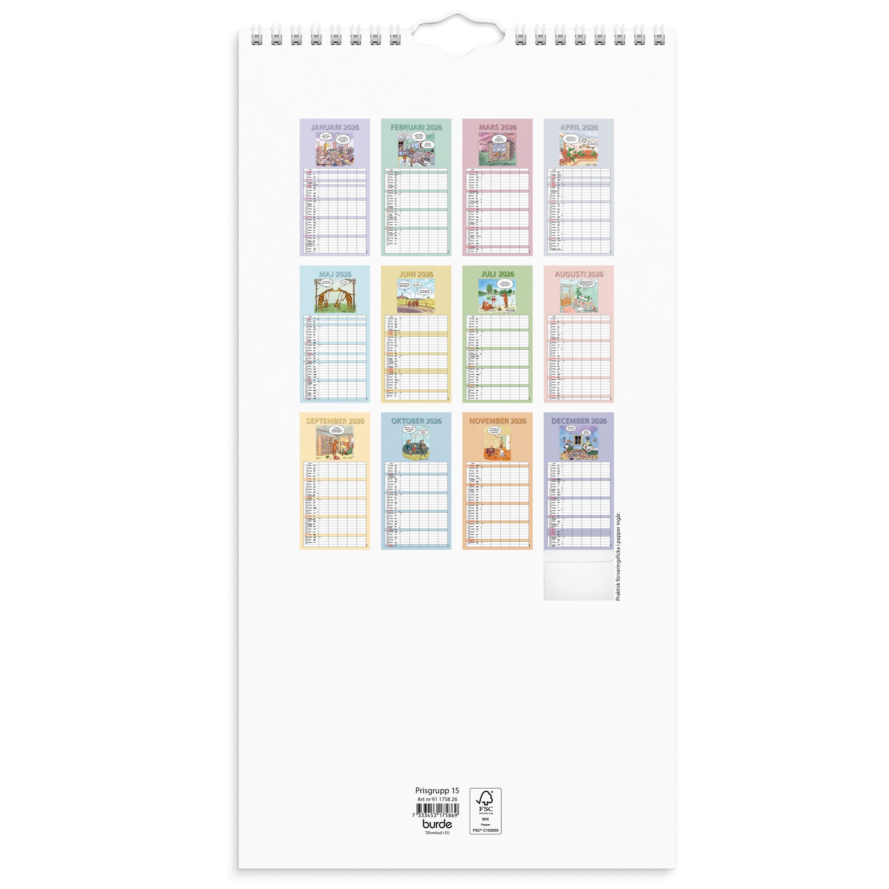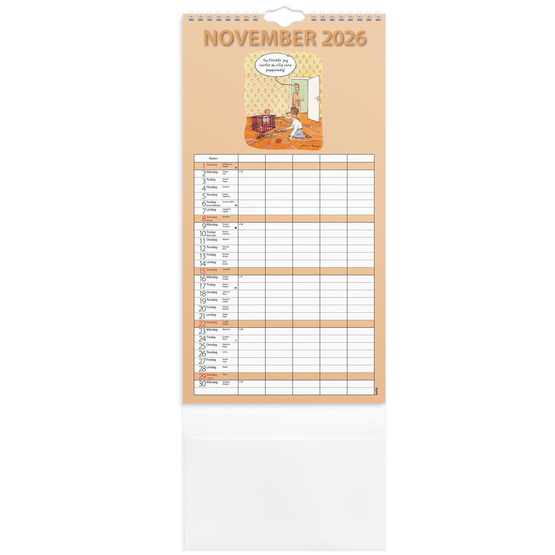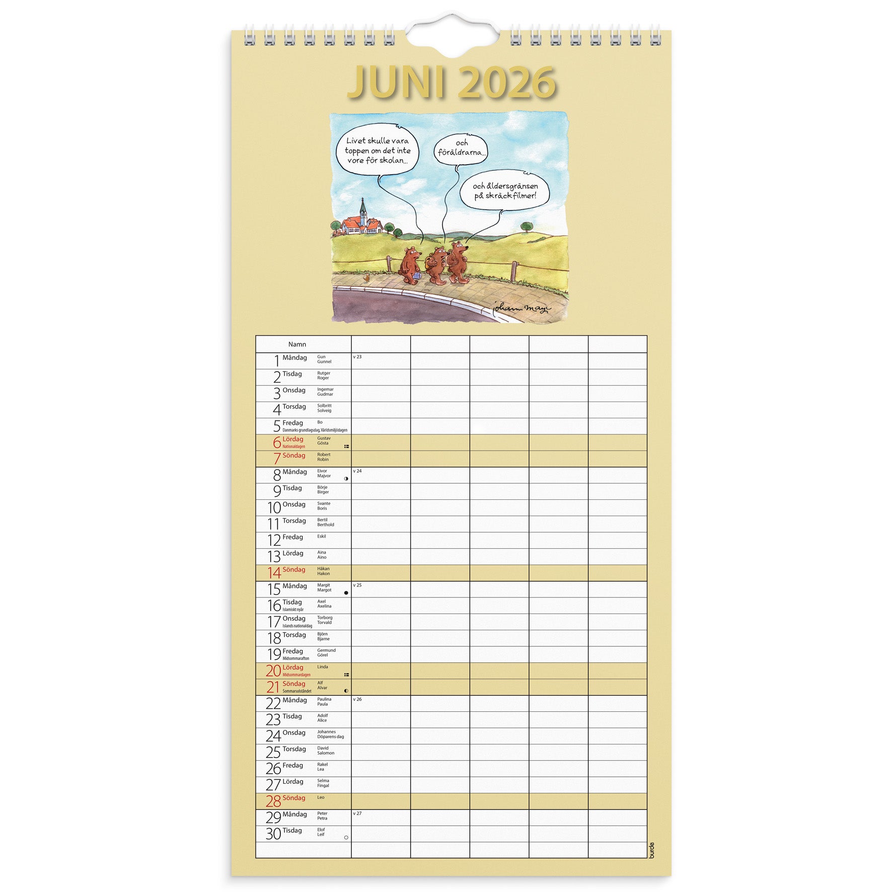 Innehåll: 5 kolumner, Flaggdagar, Helgdagar/aftnar, Månfaser, Namnsdagar, Temadagar/händelser.