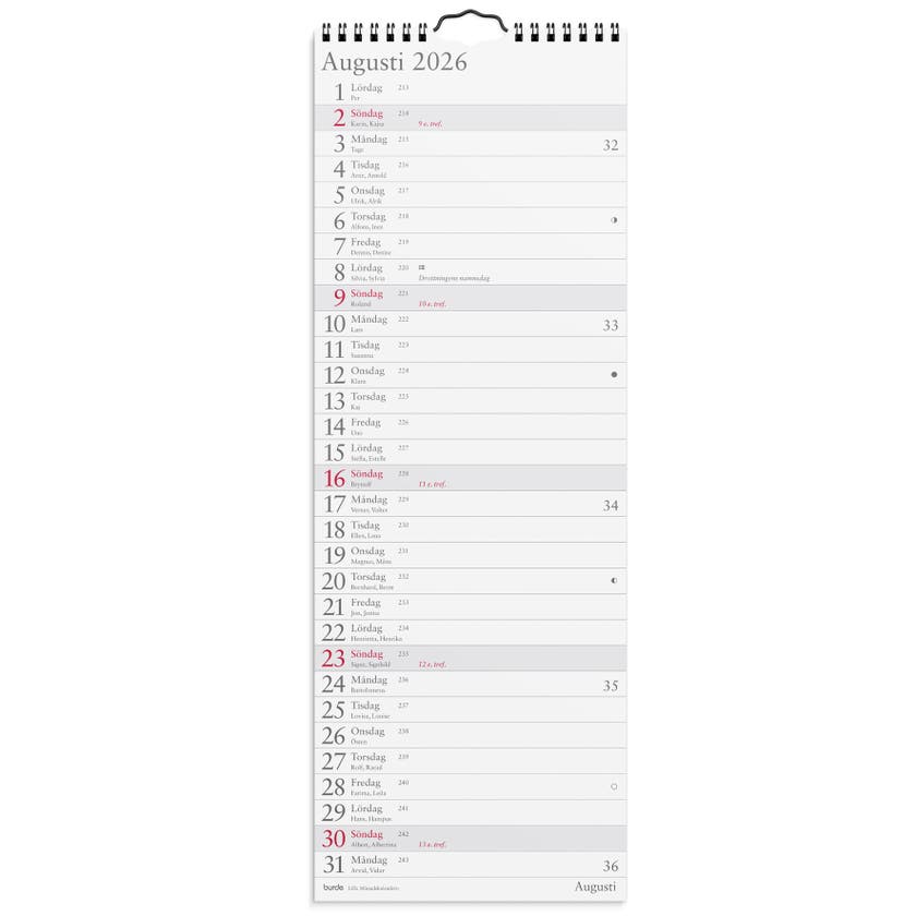 Lilla Månadskalendern från Burde, spiralbunden väggkalender.