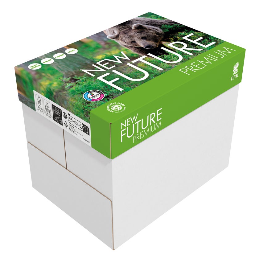 Kopieringspapper New Future Premium. NEW FUTURE – ett hållbart val. UPM:s Responsible Fibre™ garanterar att fibrerna i denna produkt uppfyller de mest krävande hållbarhetskraven i industrin. New Future Premium - det rätta valet för professionella utskrifter med utomordentlig finish. New Future Premium med ColorLok. ColorLok Teknologi är en standard för bättre utskriftskvalitet. Papper som är kvalificerat att bära ColorLok-logotypen, erbjuder bästa möjliga resultat.