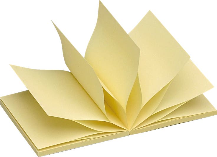 Självhäftande Notes - Kom-ihåg-lappar som är limmade växelvis, vilket gör att det alltid finns ett nytt blad att greppa.